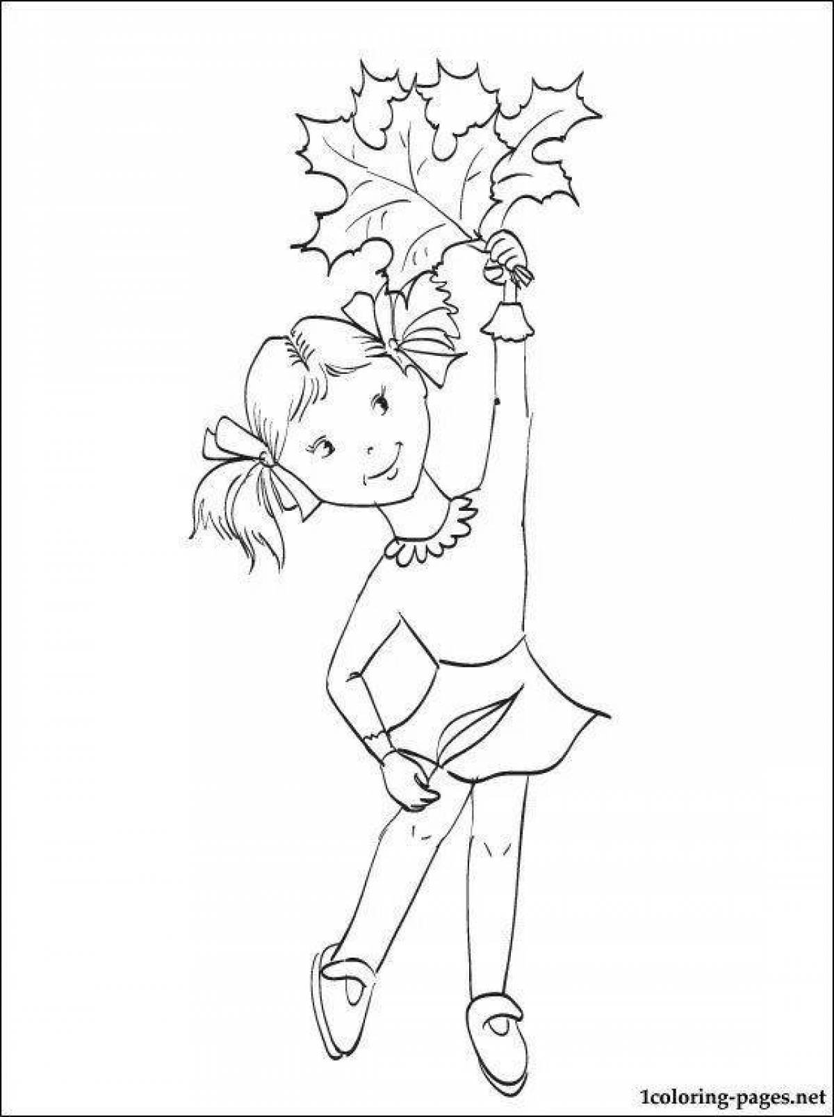 ![Девочка осень раскраска]()