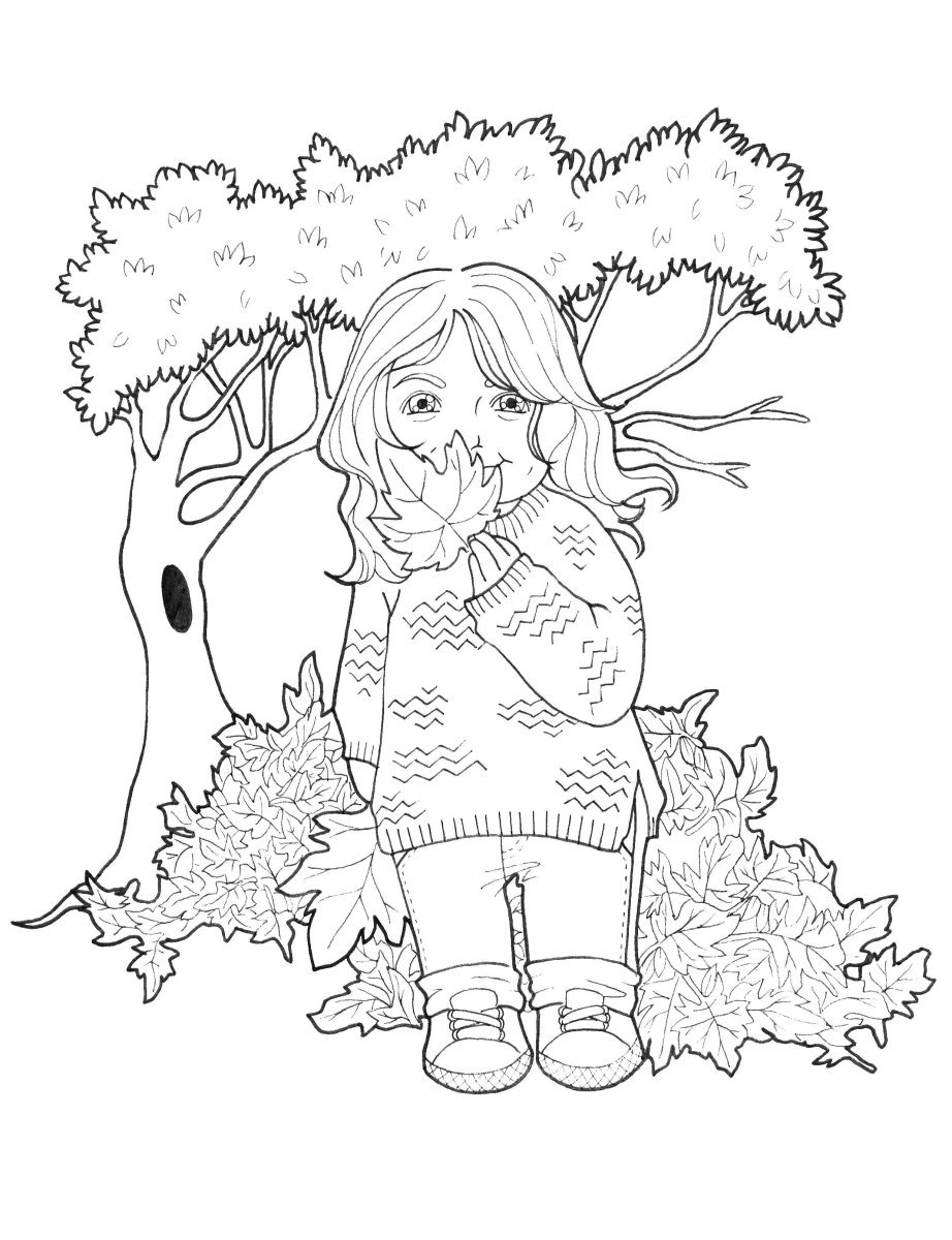 Девочка осень раскраска