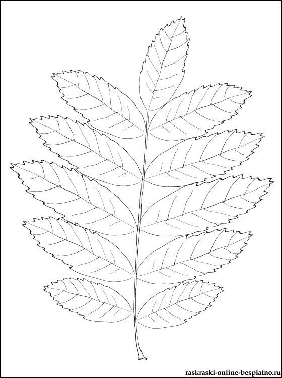 Лист рябины раскраска для детей
