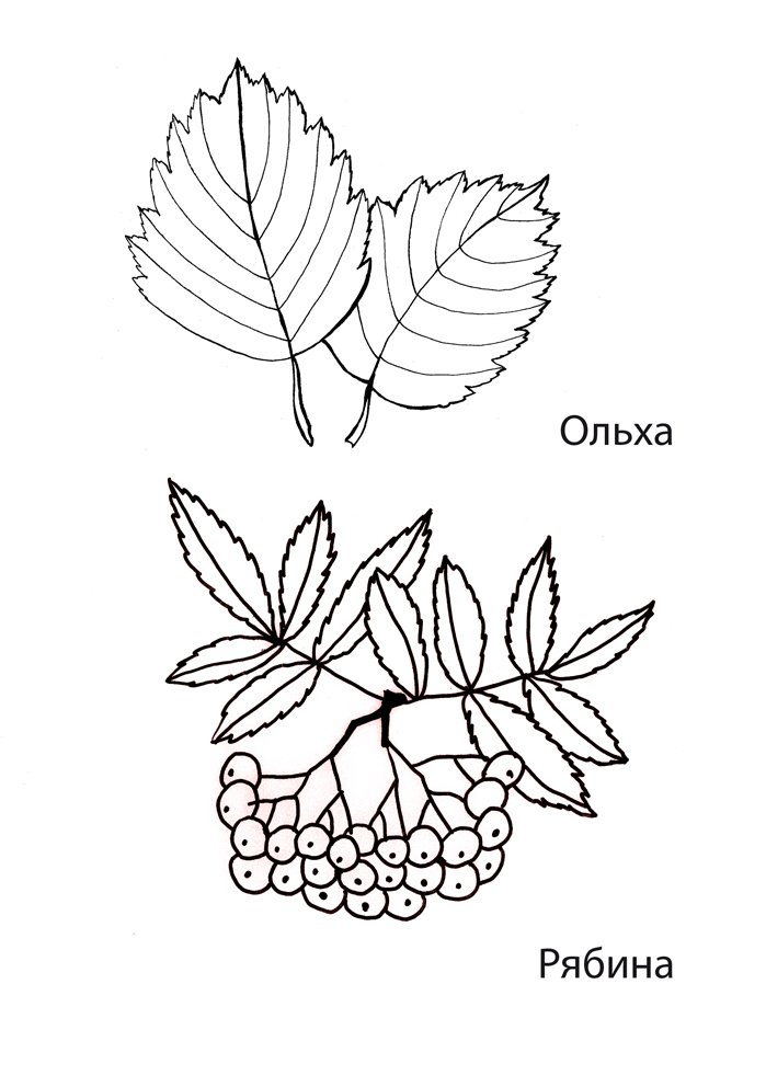 ![Лист рябины разукрашка]()