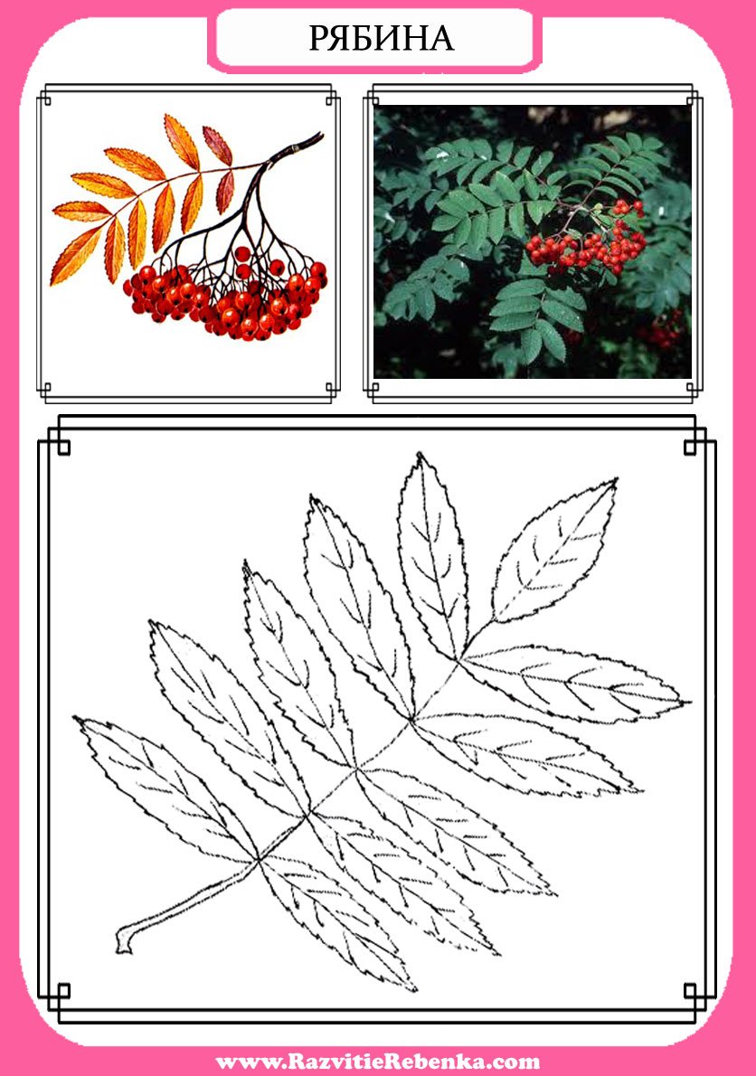 ![Лист рябины раскраска для детей]()