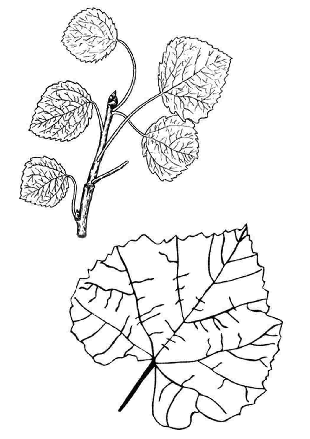 ![Лист тополя раскраска для детей]()