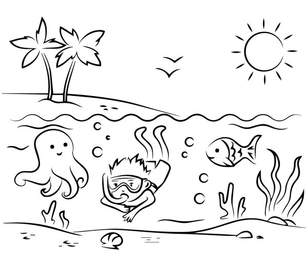 ![Раскраска пляж]()