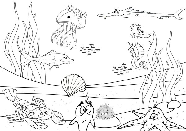 ![Раскраска морские обитатели]()