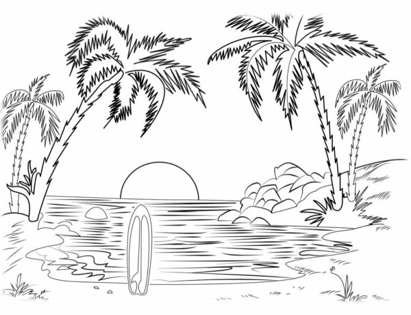 ![Раскраска остров с пальмой]()