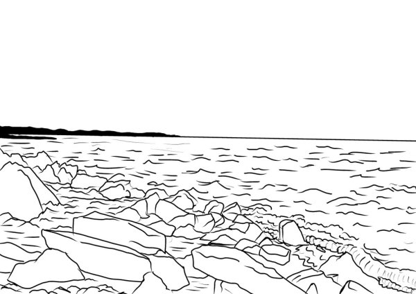 ![Морской пейзаж раскраска]()