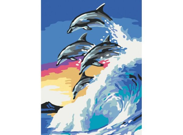 Dimensions картина по номерам "дельфины в море" 23х30 см