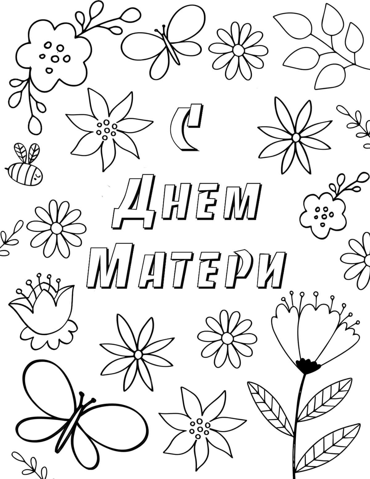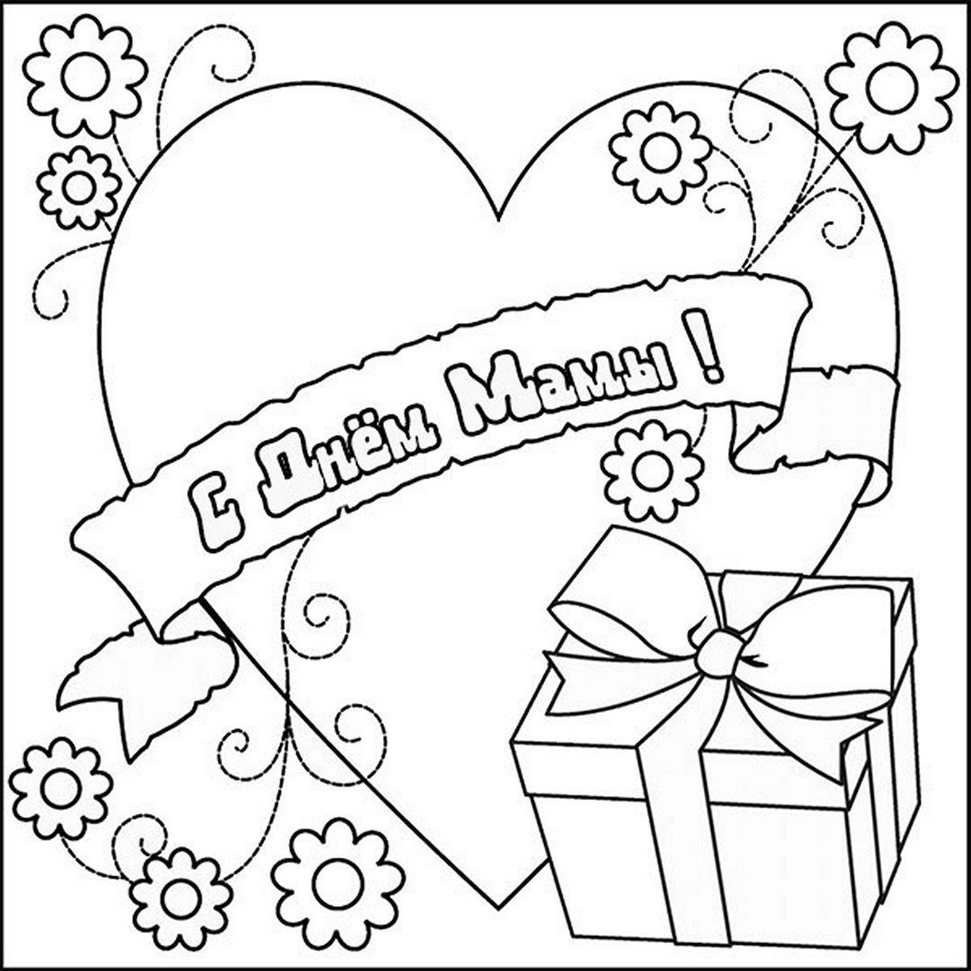 Открытка ко Дню матери раскраска