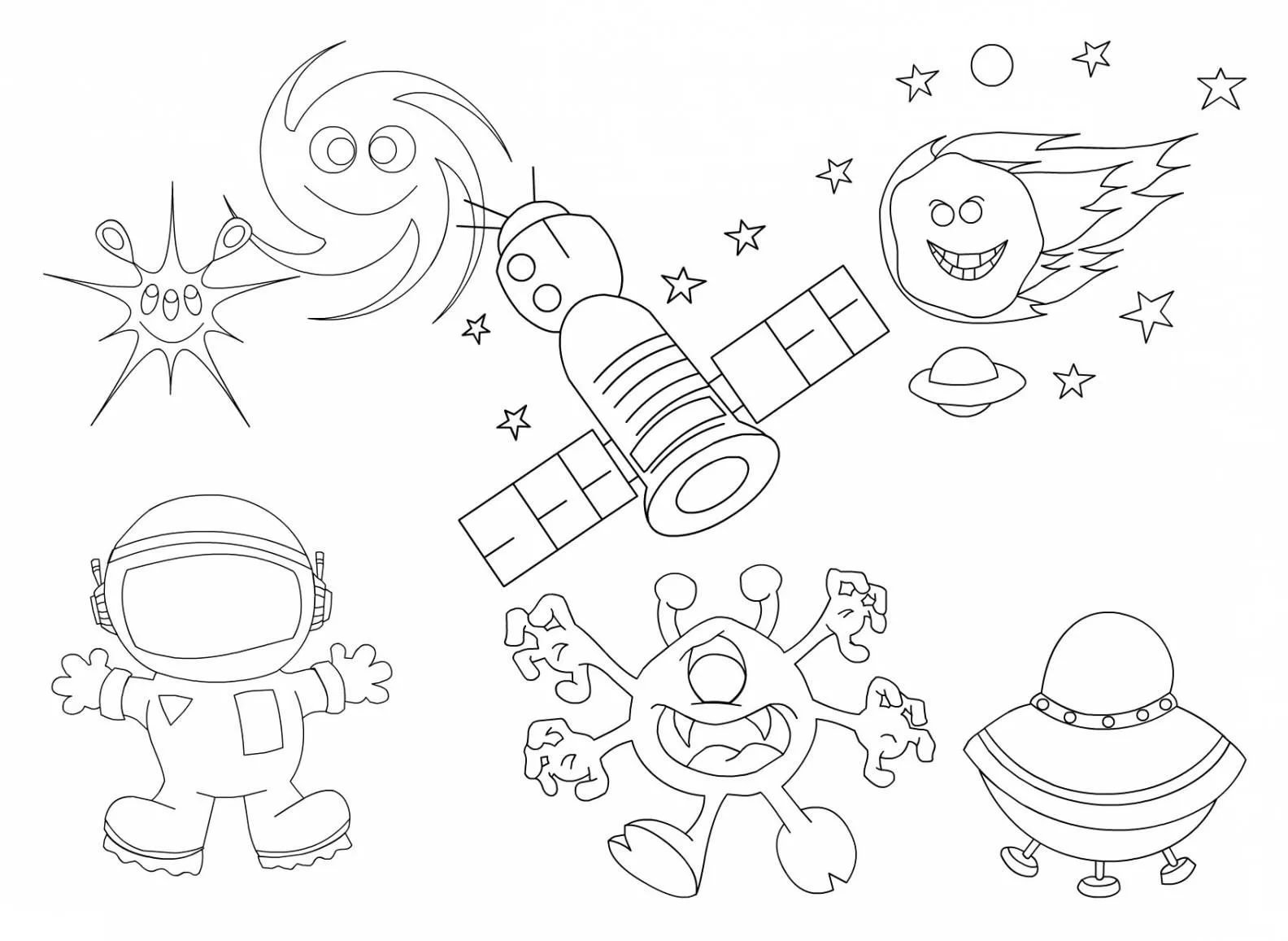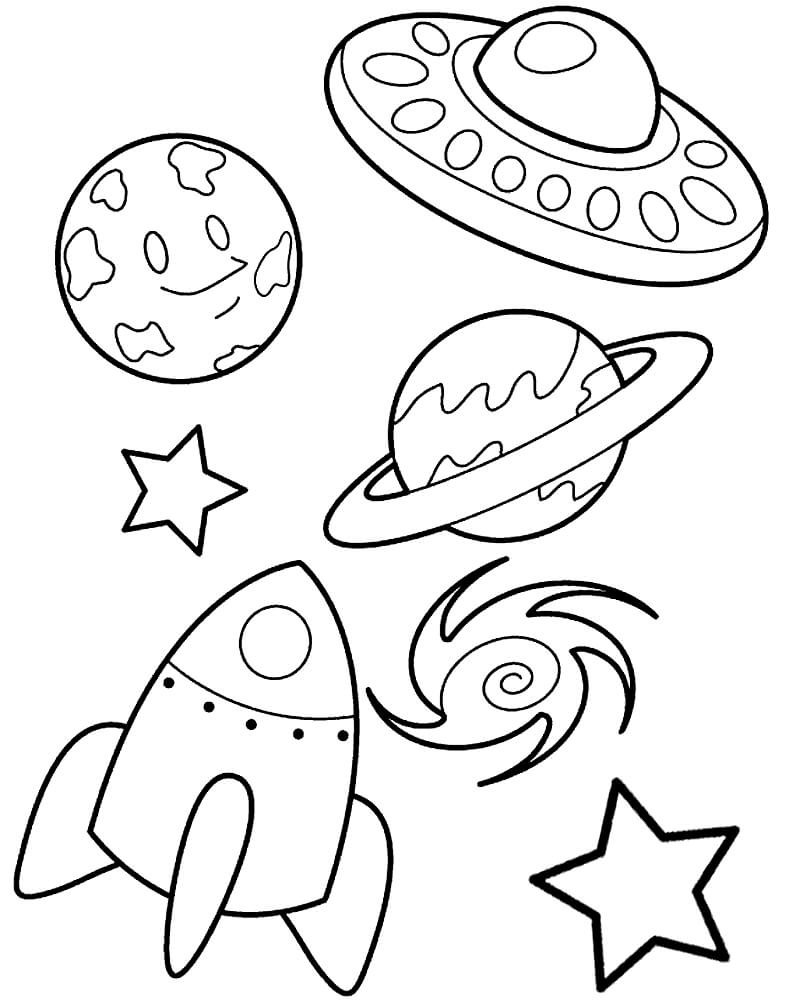 ![Космические раскраски для детей]()