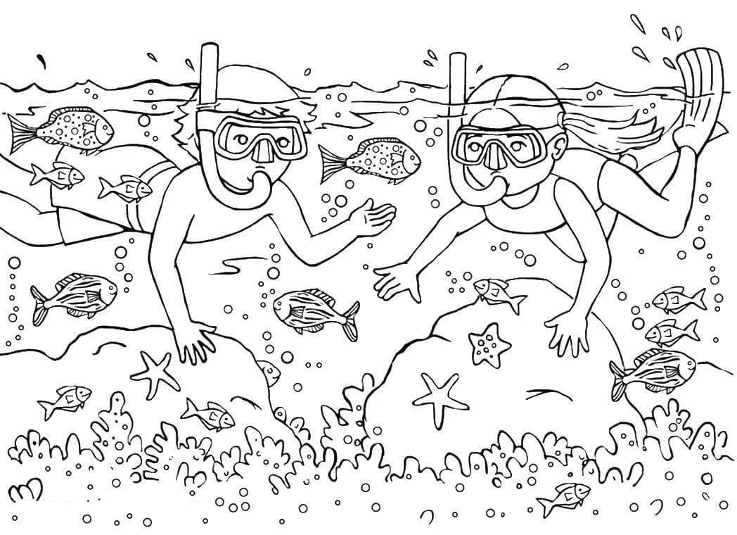 В море. Раскраска