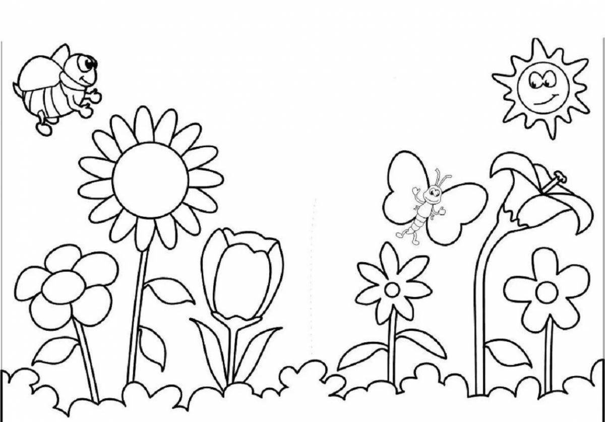 ![Цветочная Поляна раскраска для детей]()