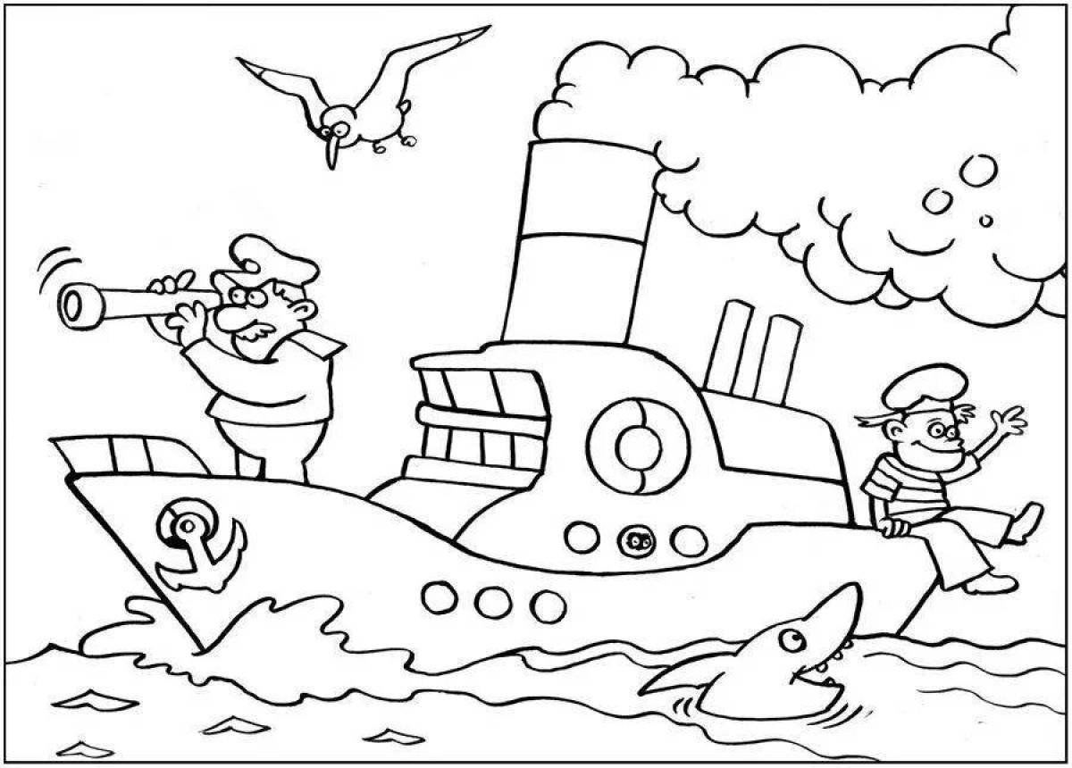 Пароход раскраска