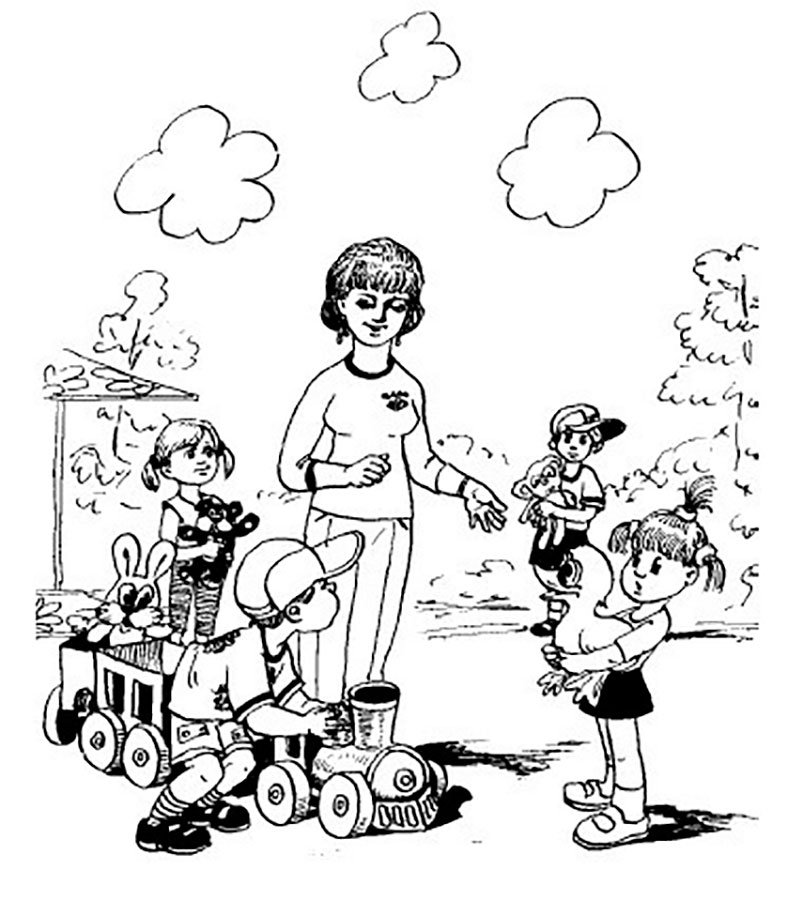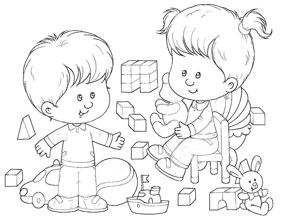 ![Раскраска дети в детском саду]()
