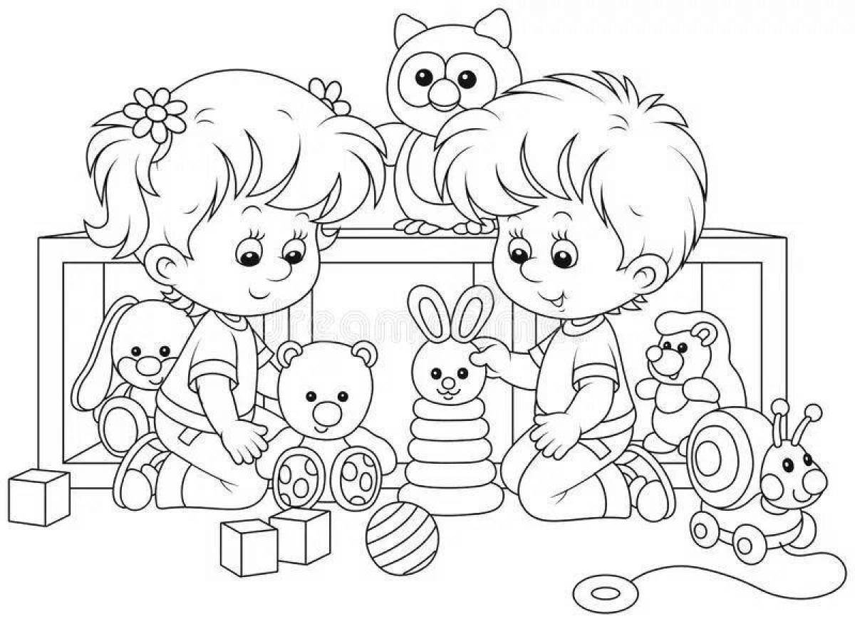 Раскраска дети в детском саду