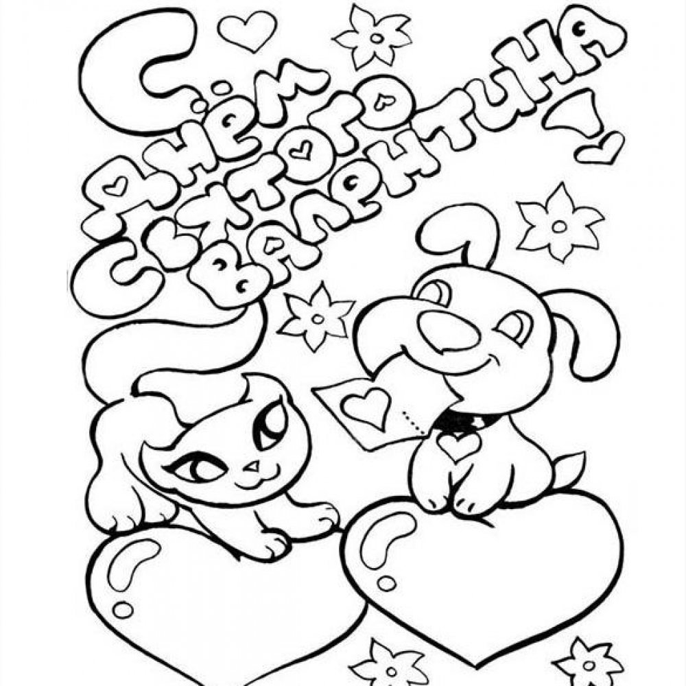 Раскраски на день Святого Валентина открытки