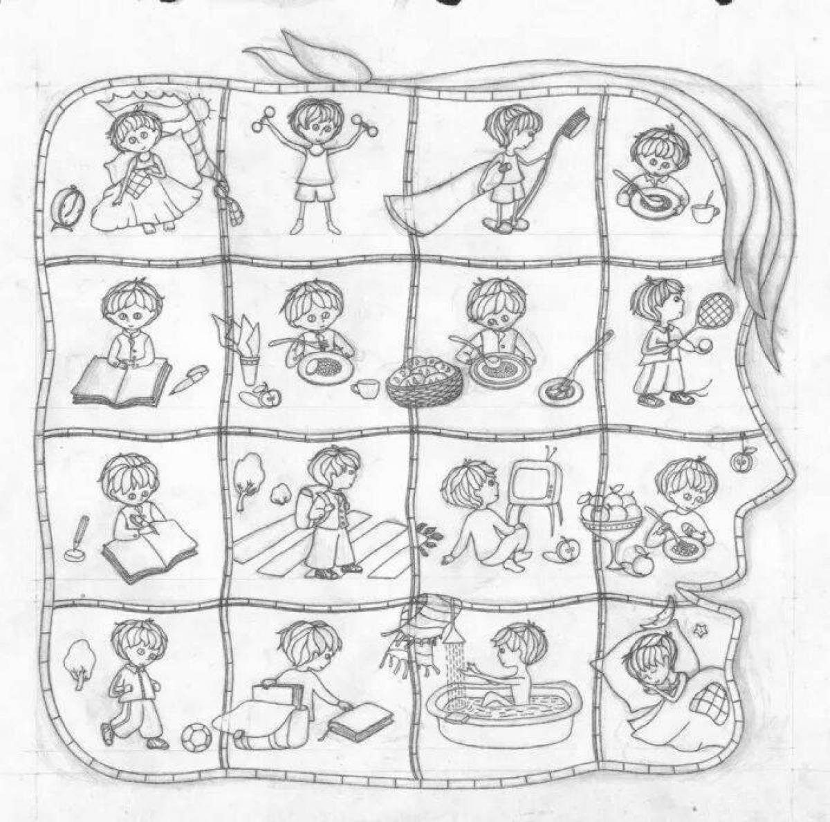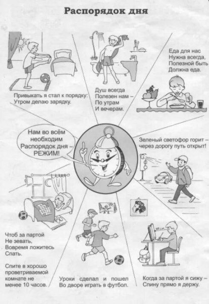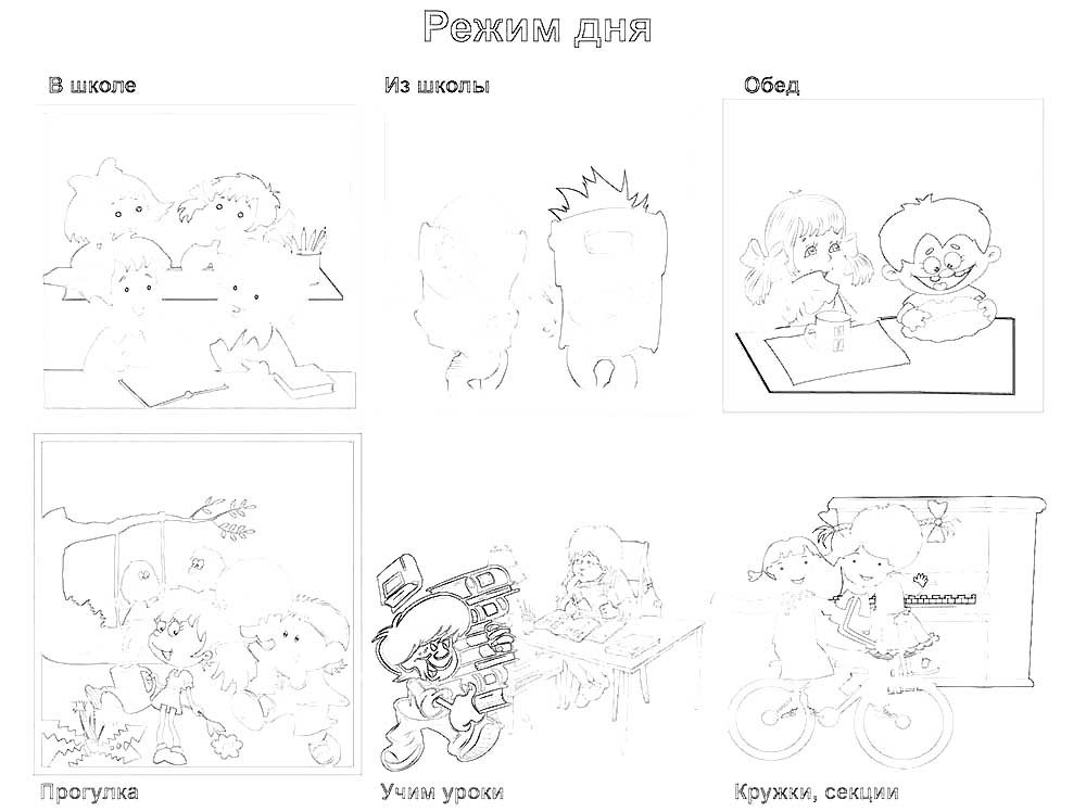 Раскраски режим дня первоклассника – это увлекательный и познавательный способ помочь малышу ориентироваться во времени и привыкнуть к школьному распорядку. В этих раскрасках изображены различные моменты каждого дня – утренняя зарядка, завтрак, уроки, прогулка на перемене, обед, дополнительные занятия и время для отдыха. Ребенок может самостоятельно раскрашивать картинки, одновременно запоминая их последовательность. Это поможет ему легче ориентироваться во времени и создаст правильную привычку следовать школьному расписанию. Кроме того, такие раскраски способствуют развитию мелкой моторики и воображения у малыша. Они станут отличным помощником для родителей и педагогов в формировании у детей ответственного отношения к учебе и контроля времени.
