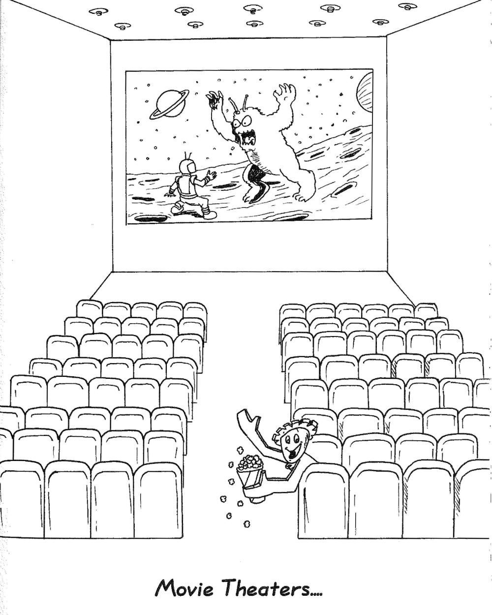 Кинотеатр раскраска для детей