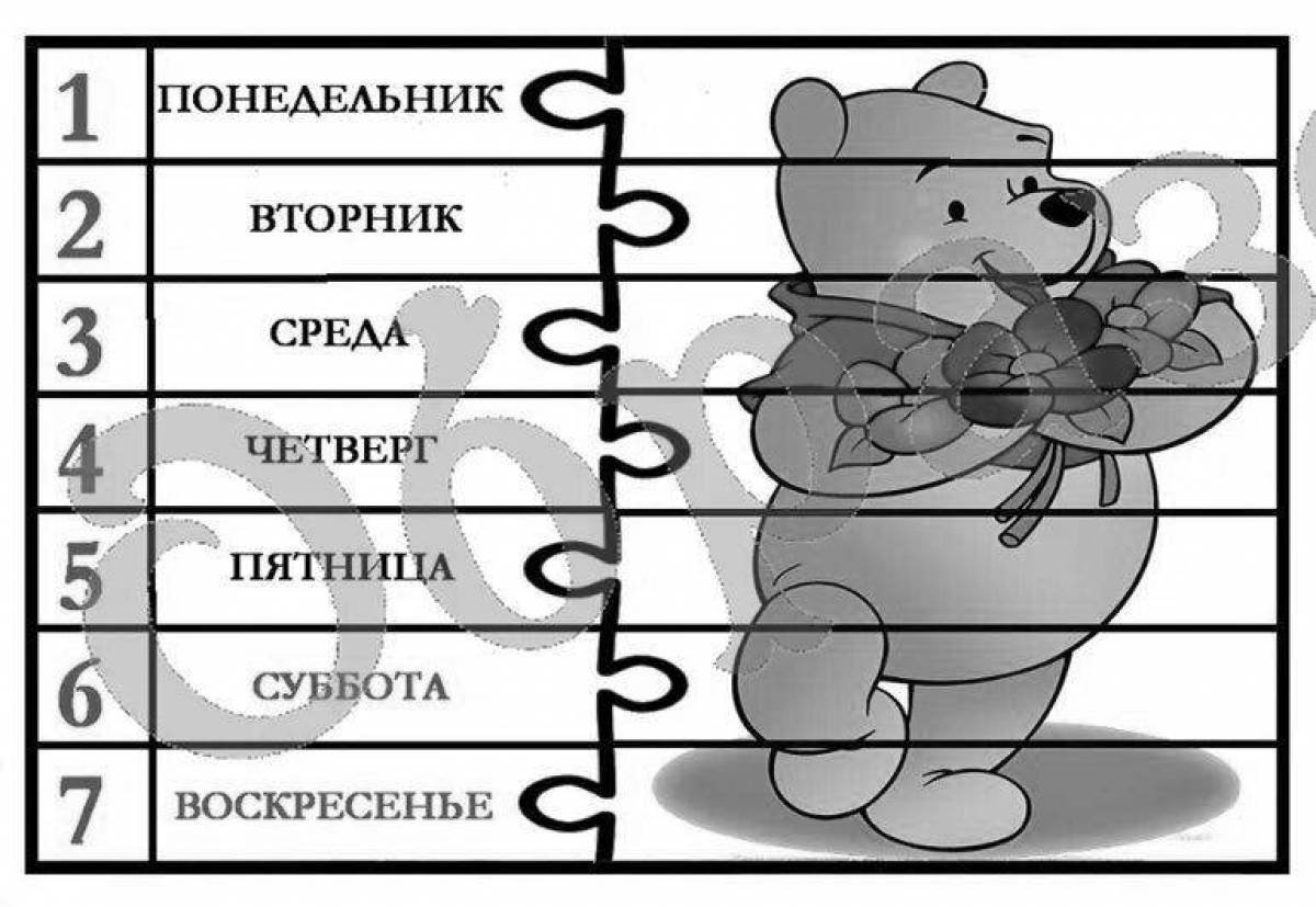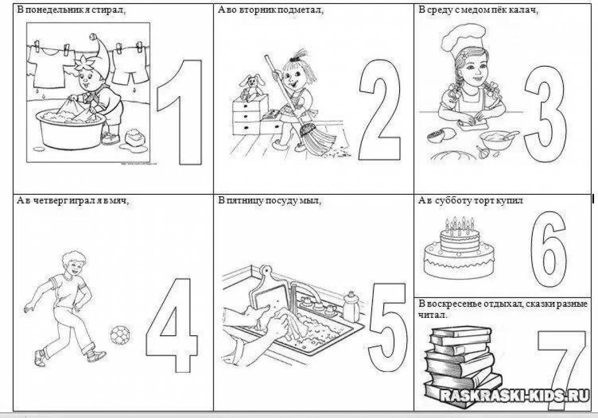 Раскраски календарь дни недели - это отличная возможность для детей не только узнать и запомнить названия дней недели, но и развить свои творческие способности. Эти яркие и интересные раскраски позволят малышам с удовольствием окунуться в мир дней недели, познакомиться с их порядком и особенностями. Каждый день представлен на отдельном листе, где ребенок может самостоятельно раскрасить картинку, добавить дополнительные элементы или выразить свою фантазию. Такие календари стимулируют развитие мелкой моторики, воображения и творческого мышления у детей, а также помогают им легко запомнить порядок дней недели. Подарите вашему ребенку радость от раскрашивания календаря дней недели и превратите обучение в интересное приключение!