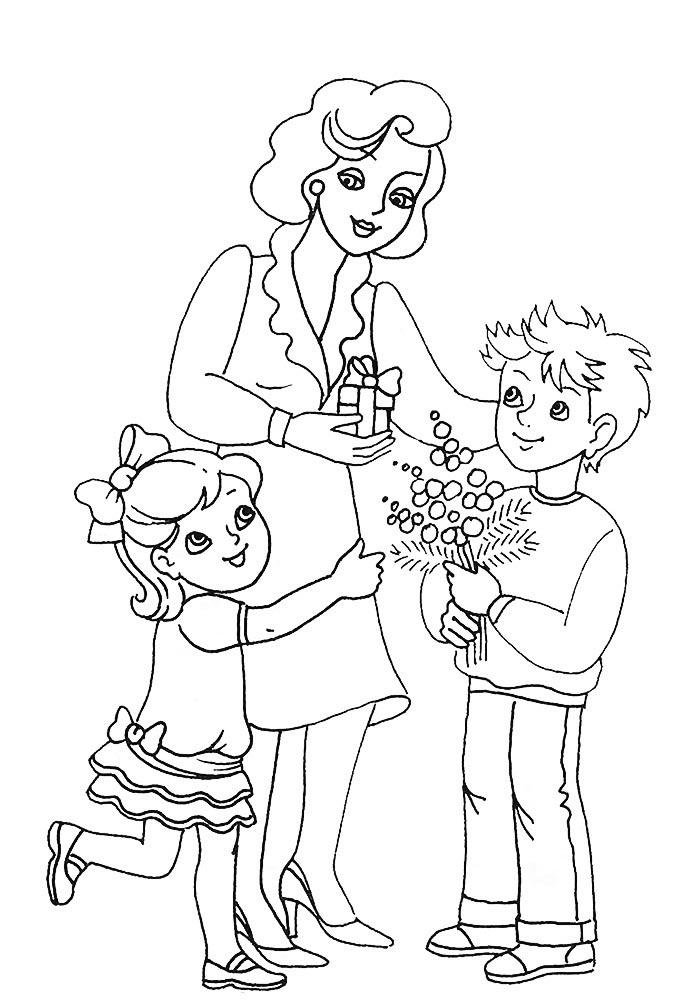Рисунок ко Дню матери раскраска