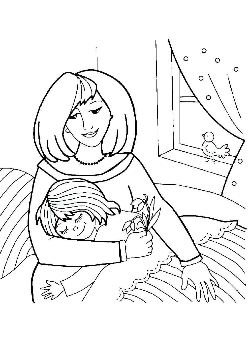 ![Раскраска ко Дню мамы]()