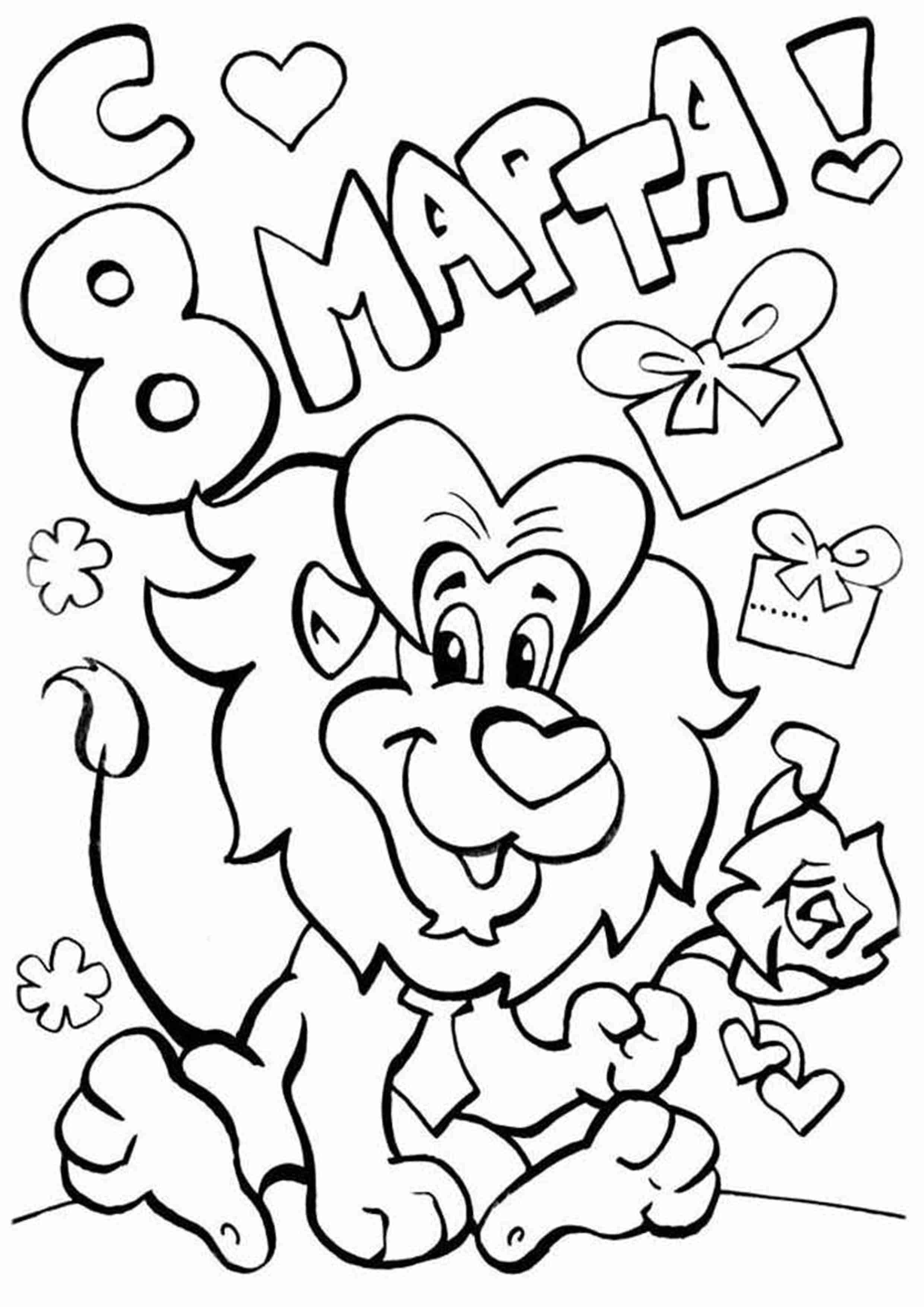 Открытка 8 марта раскраска на английском
