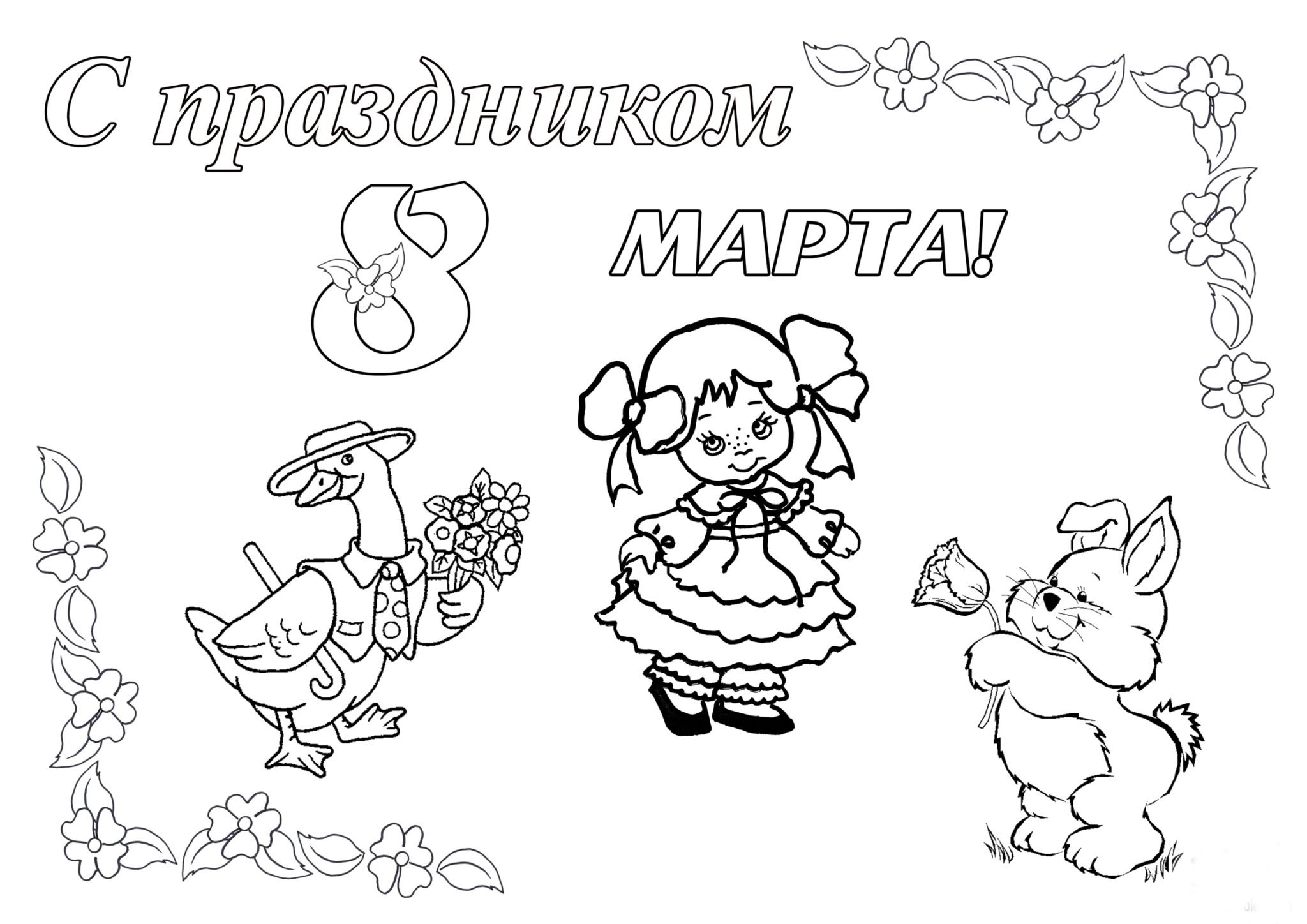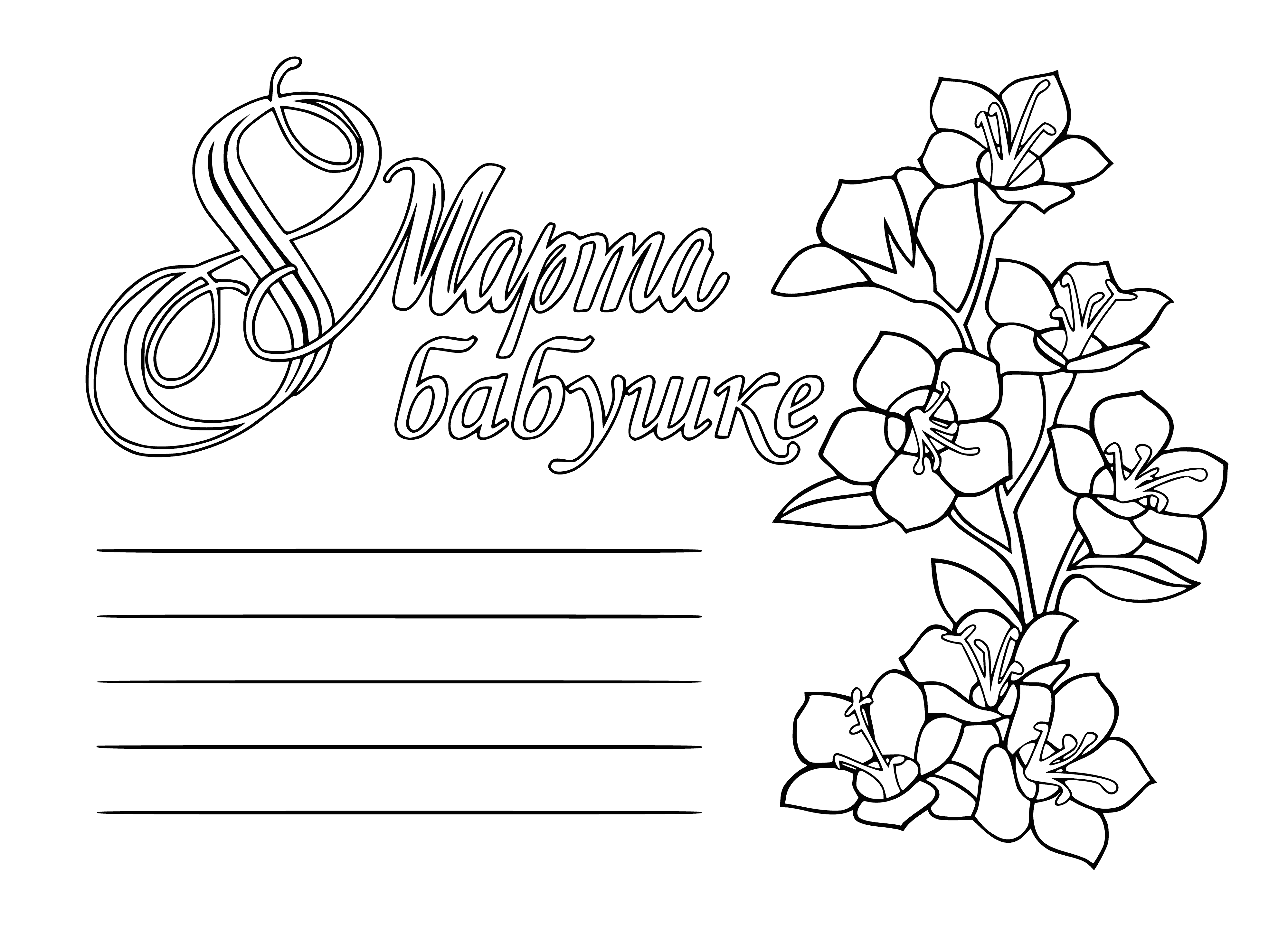 Открытка на 8 марта раскраска