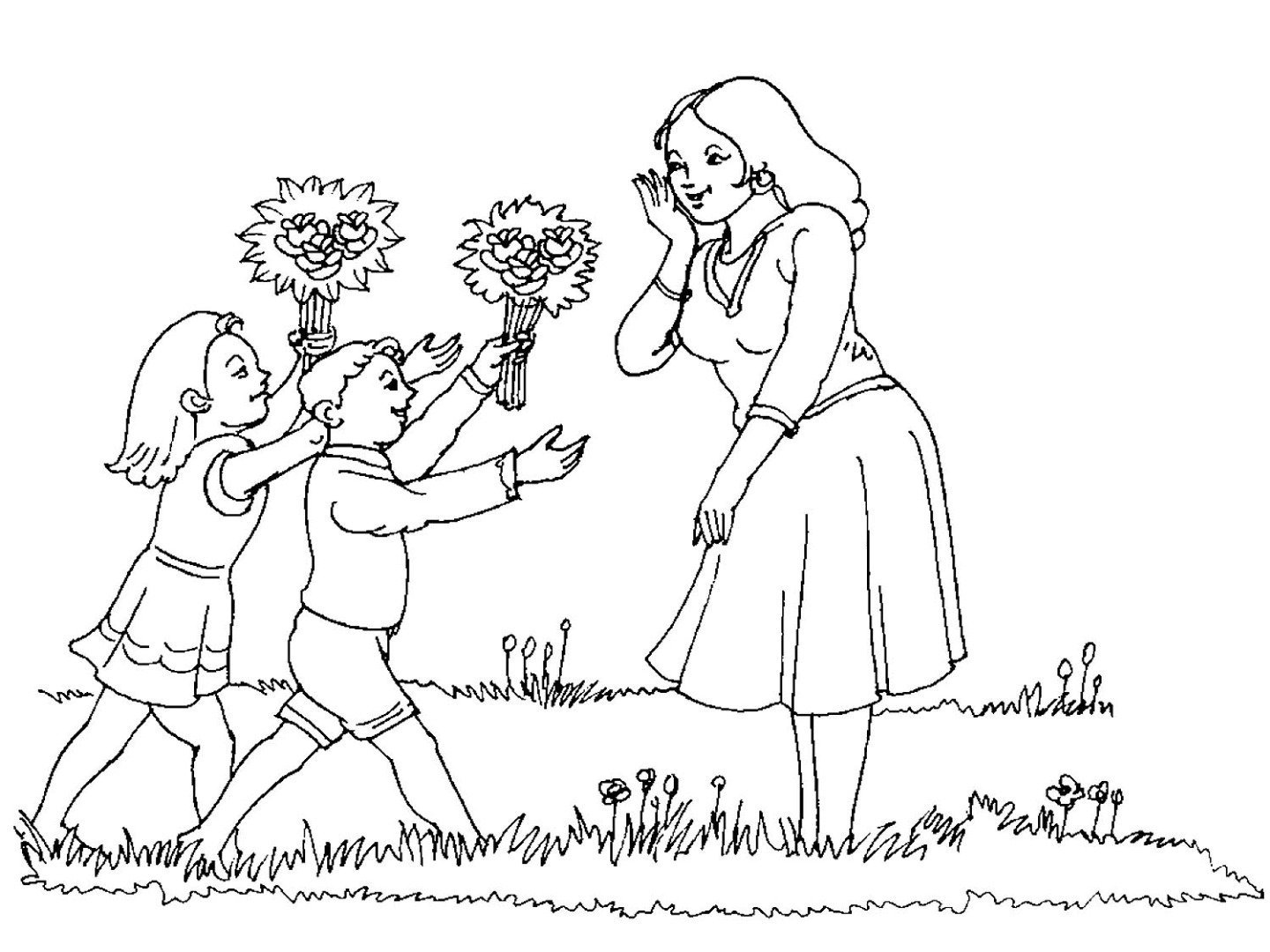 ![Раскраска мама с цветами для детей]()