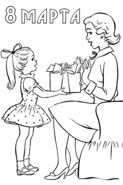 ![Раскраска 8 марта для детей]()