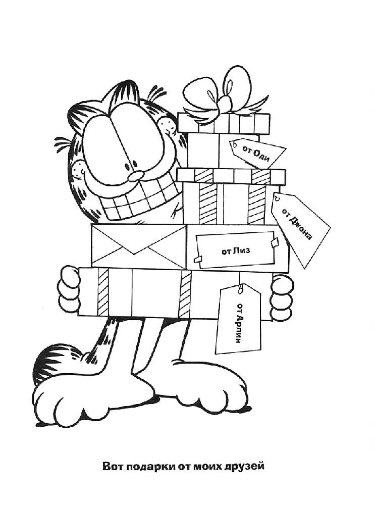 ![Раскраска Гарфилд с днем рождения]()