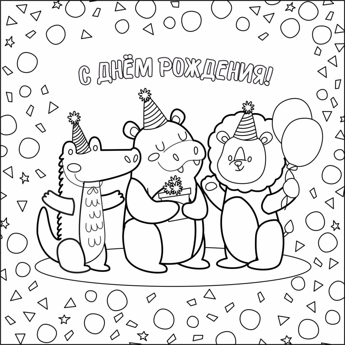 Открытка раскраска с днем рождения