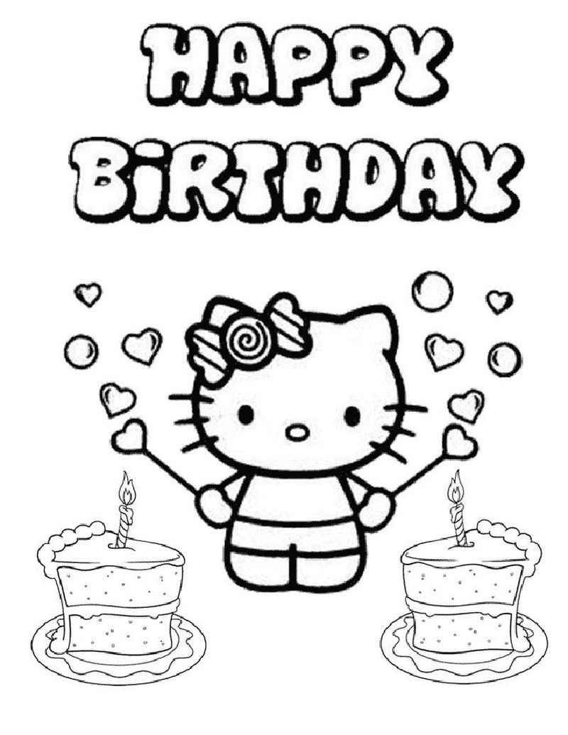 ![Раскраска Хелло Китти с днем рождения]()
