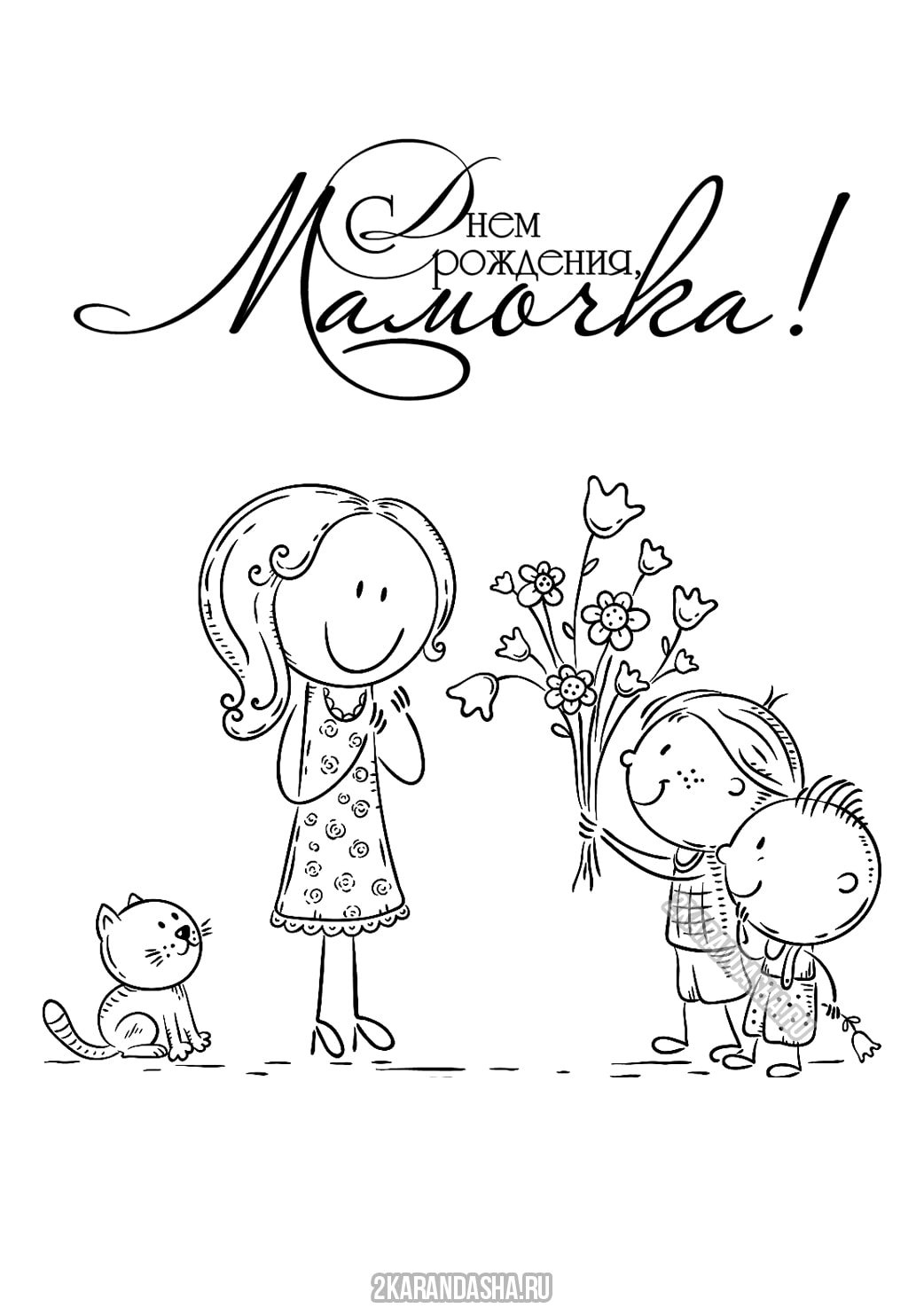![Открытка маме на день рождения раскраска]()