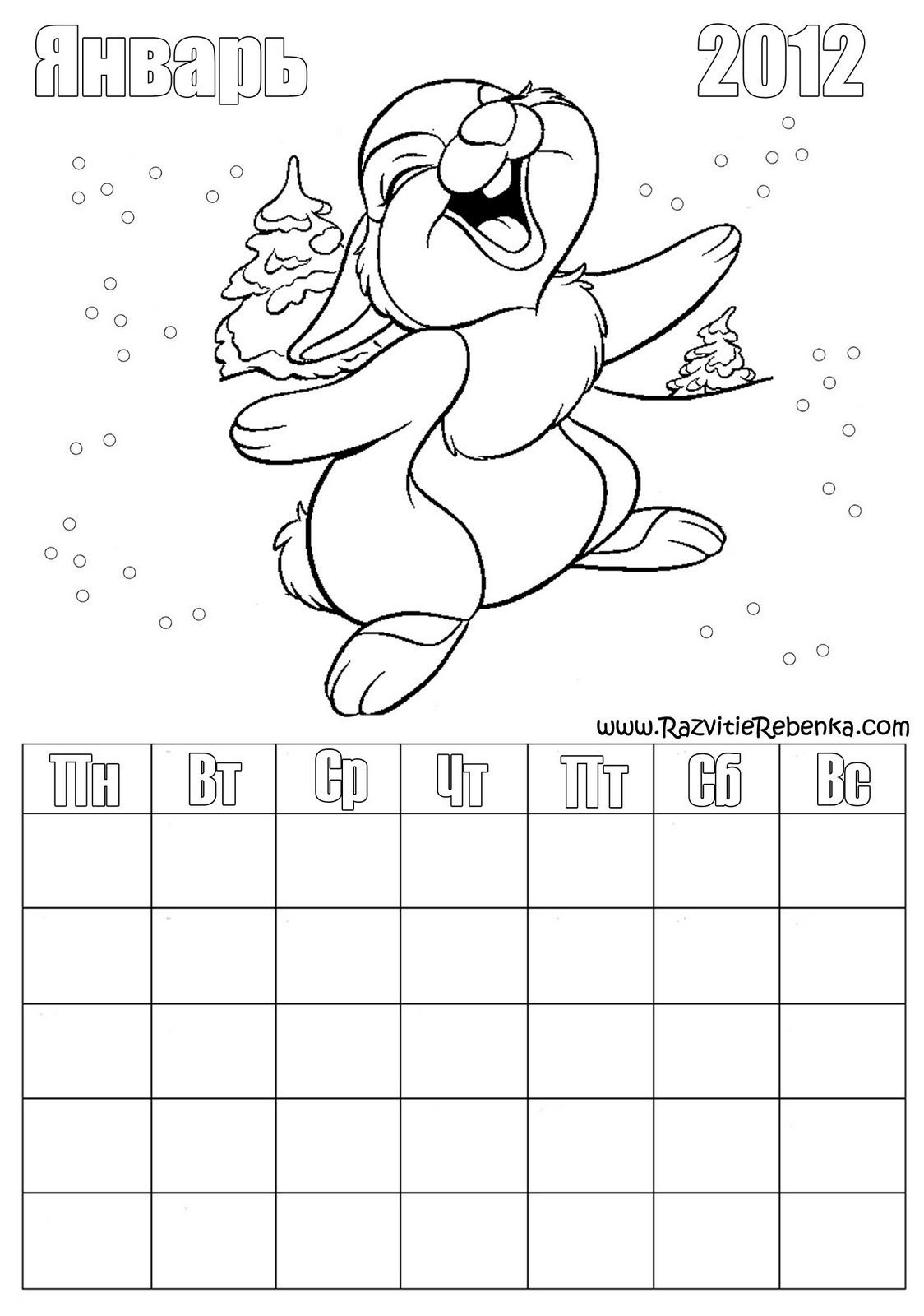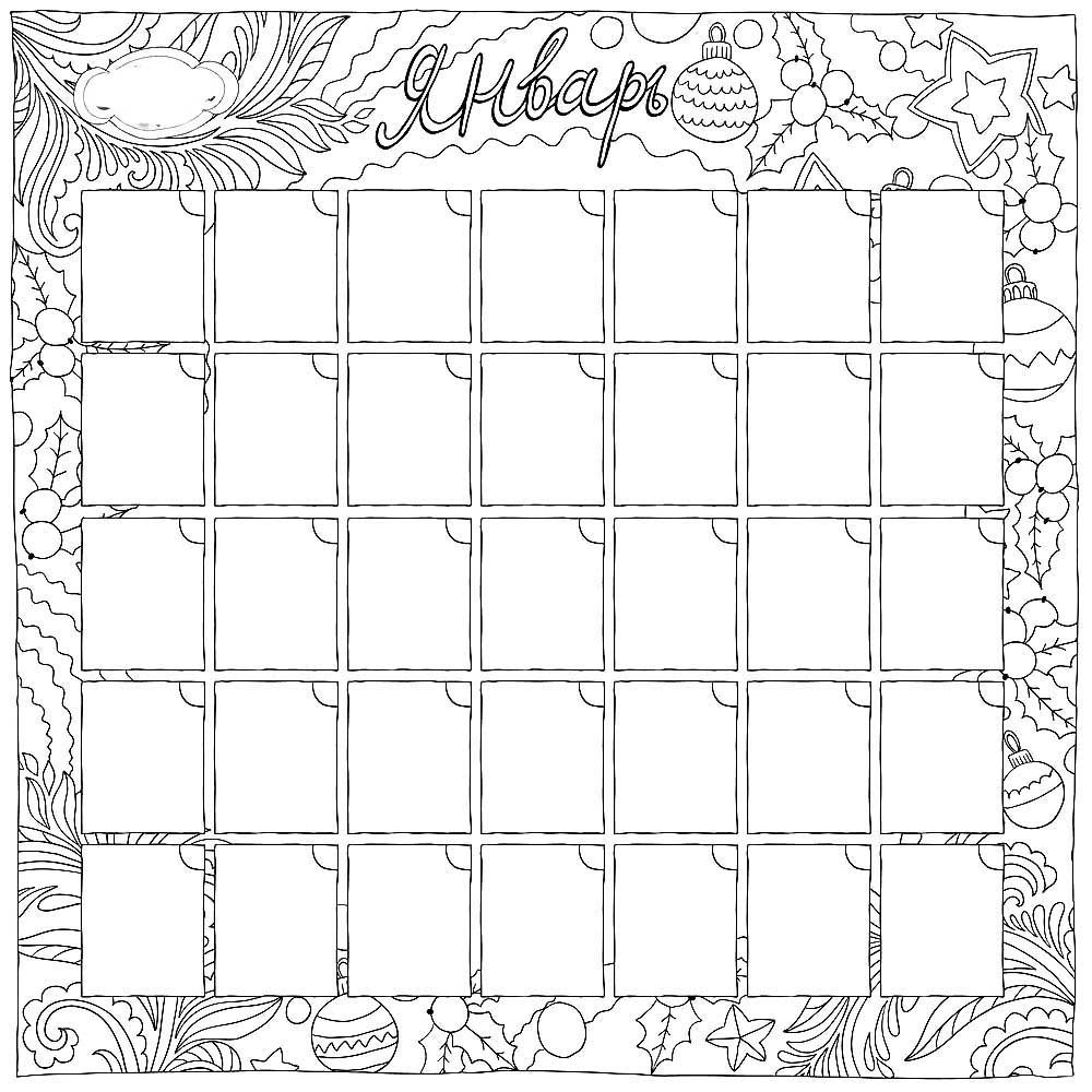 Календарь для разукрашивания