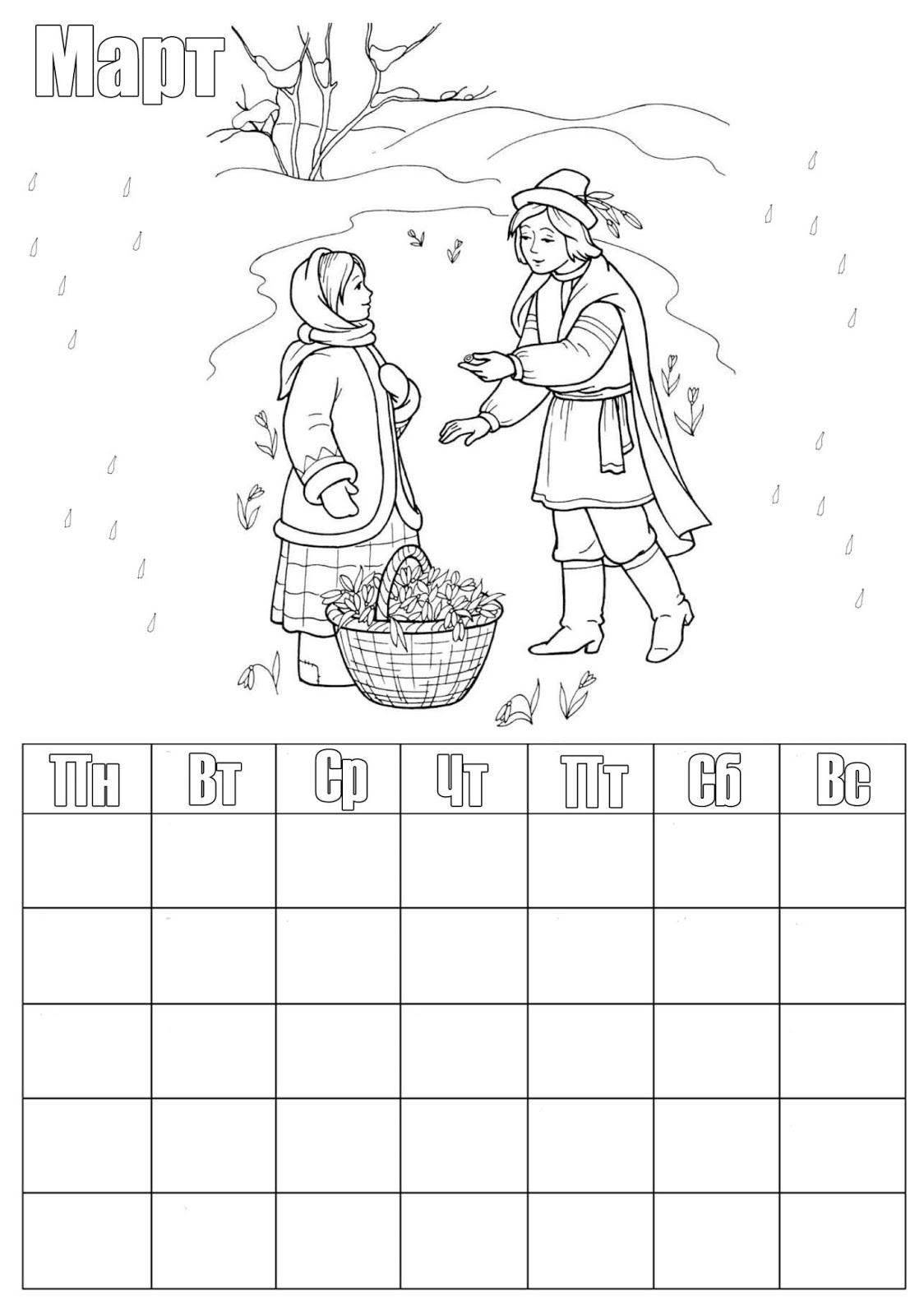 Календарик раскраска