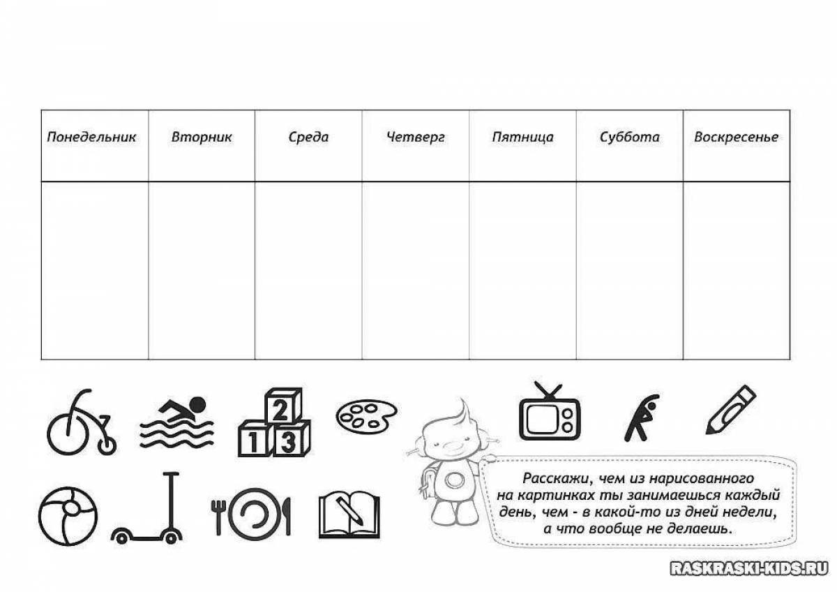 Распорядок дня раскраска для детей