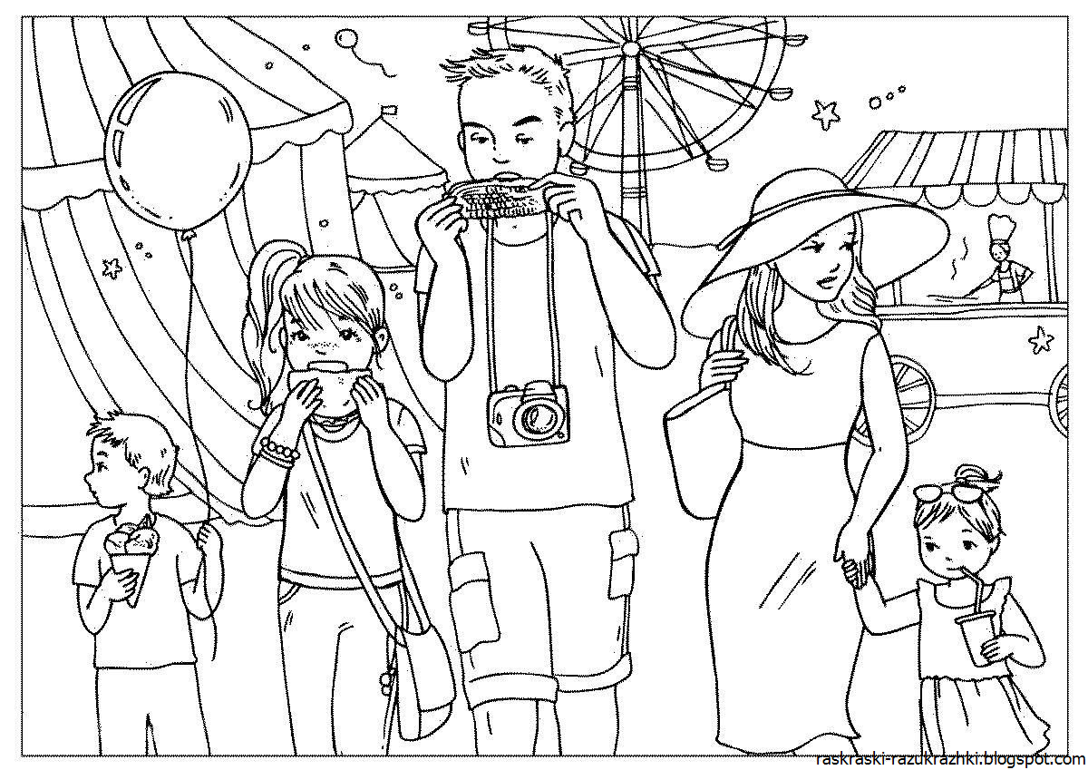 ![Раскраска семейный поход]()