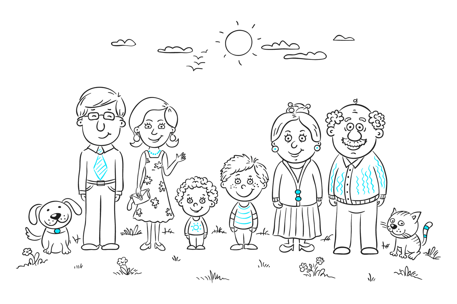 ![Семья рисунок чб]()