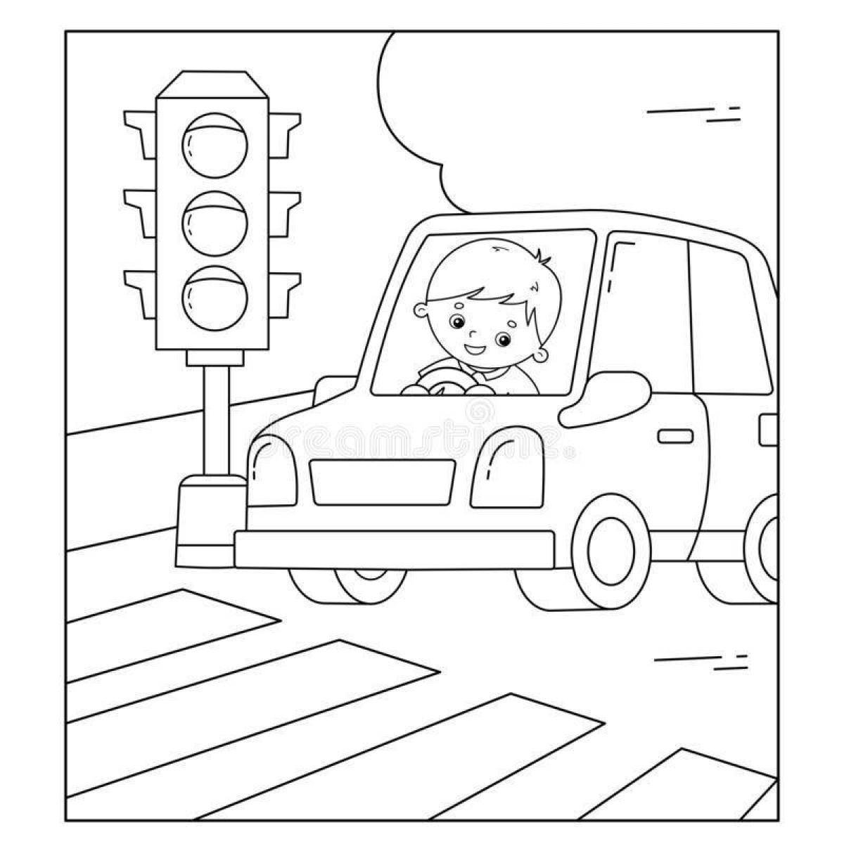 ![Рисунок правила дорожного движения для детей в садик черно белый]()