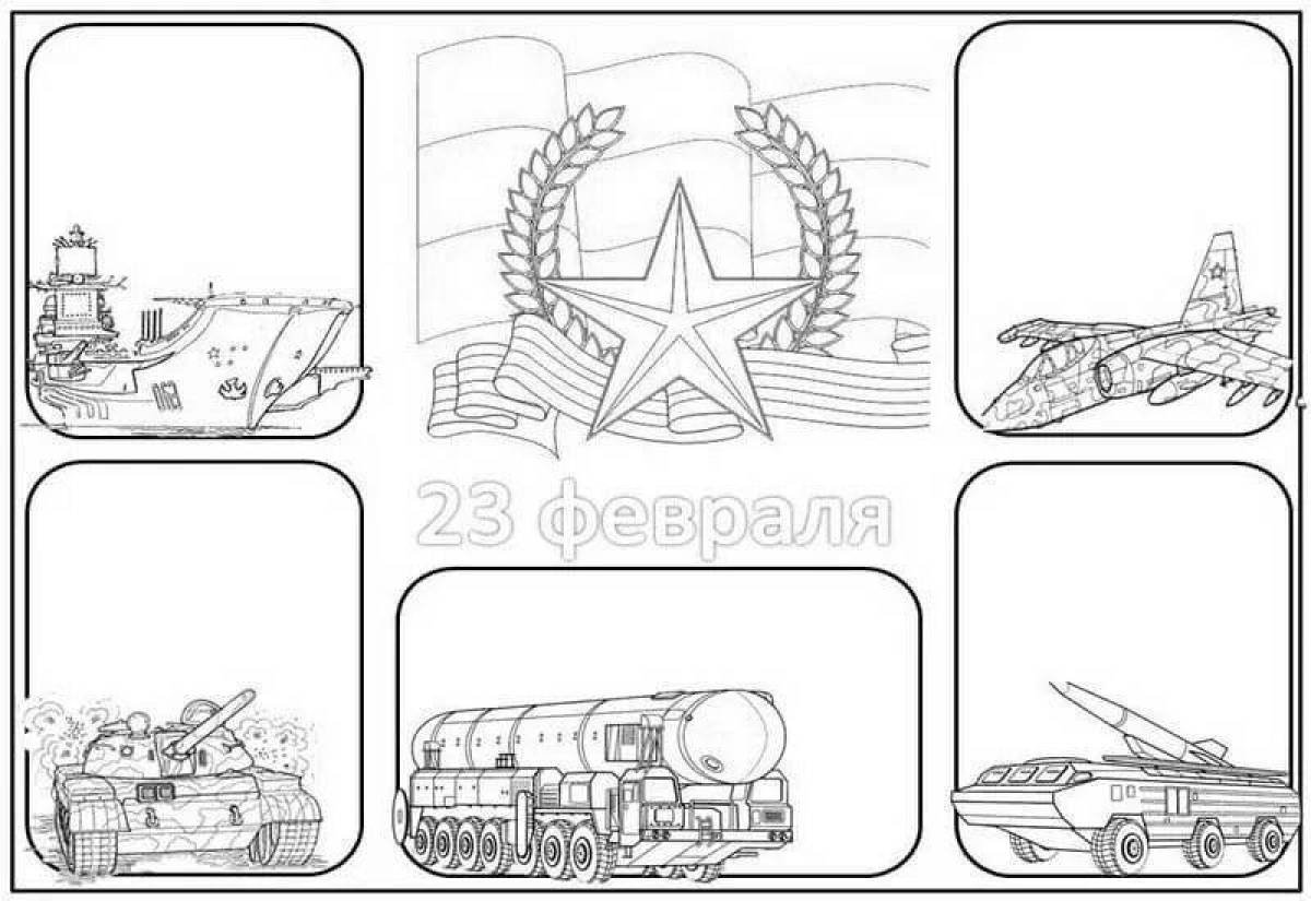 Раскраски "День советской армии" - это увлекательное занятие, которое позволит вам окунуться в историю и познакомиться с тематикой Советской армии. В наборе представлены разнообразные изображения, отражающие жизнь и деятельность советских военных. Вы сможете раскрашивать солдат, технику, боевые сцены и другие интересные мотивы. Это отличная возможность не только развлечься, но и узнать больше о нашей истории и героях, которые служили в Советской армии. Погрузитесь в атмосферу минувших времен и позвольте своему творчеству оживить страницы этой уникальной коллекции раскрасок.