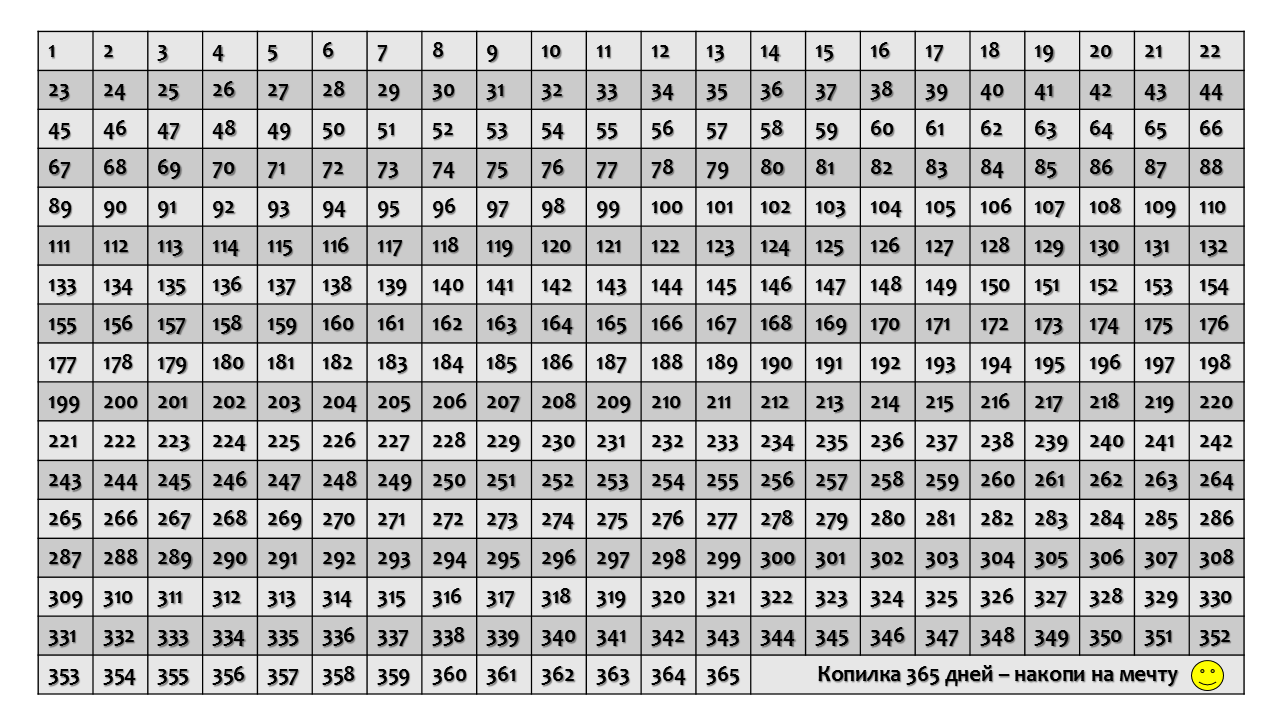 Таблица от 1 до 365 для накопления денег