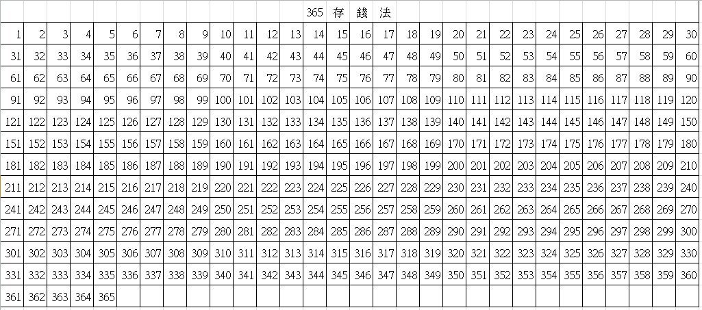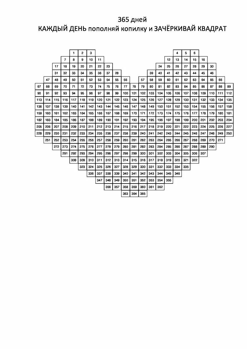 ![Таблица от 1 до 365 для накопления денег]()
