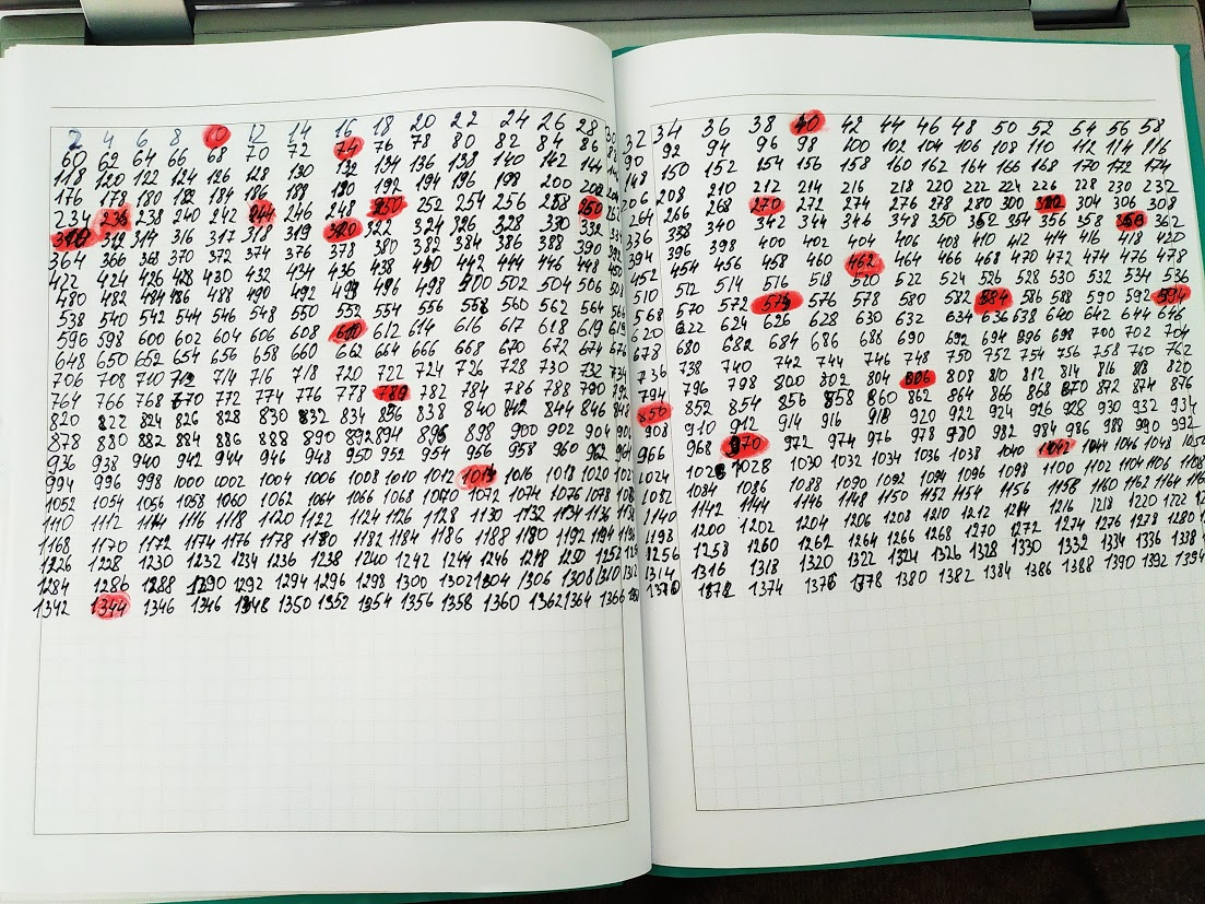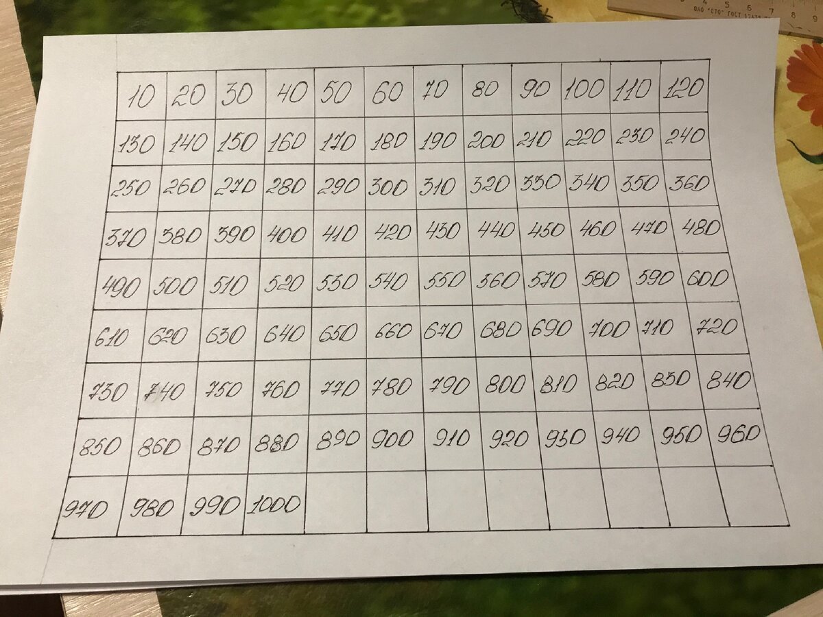 Таблица от 1 до 1000 по порядку для копилки