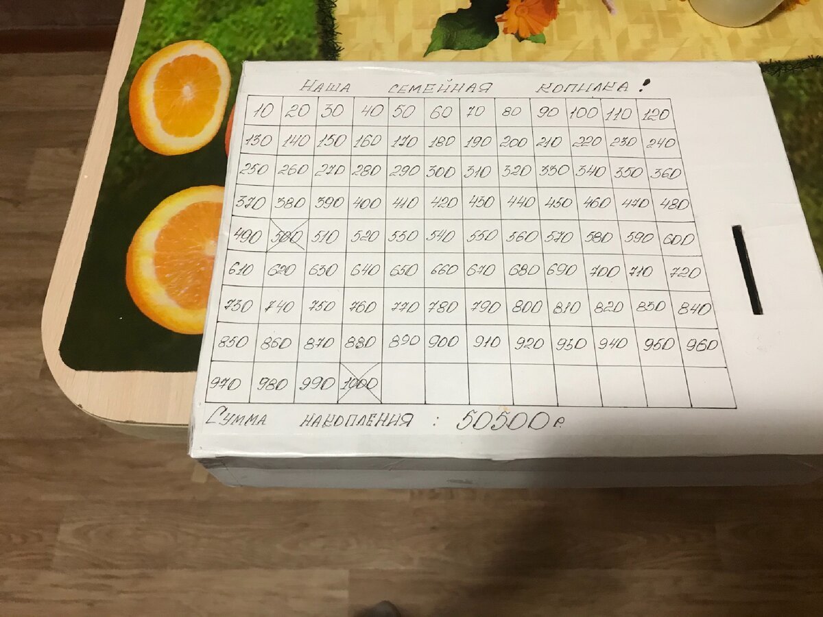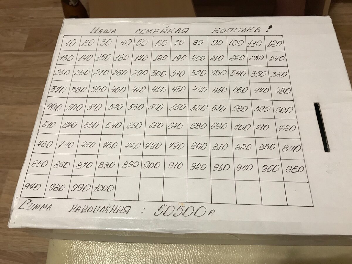 Копилка своими руками с цифрами которые надо зачеркивать