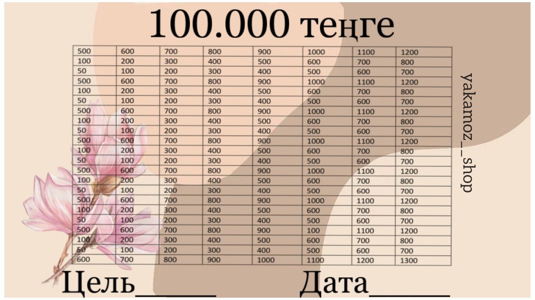 Копилка таблица с цифрами