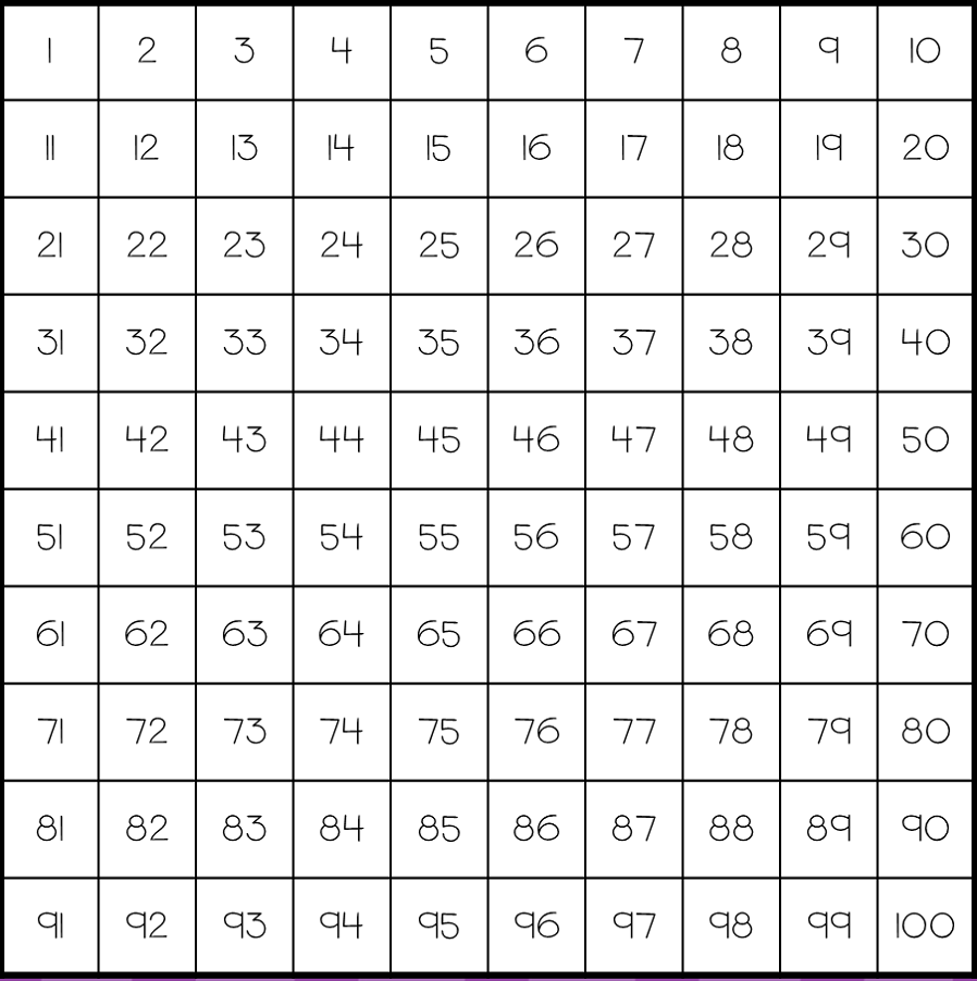 ![Квадрат с цифрами от 1 до 100]()