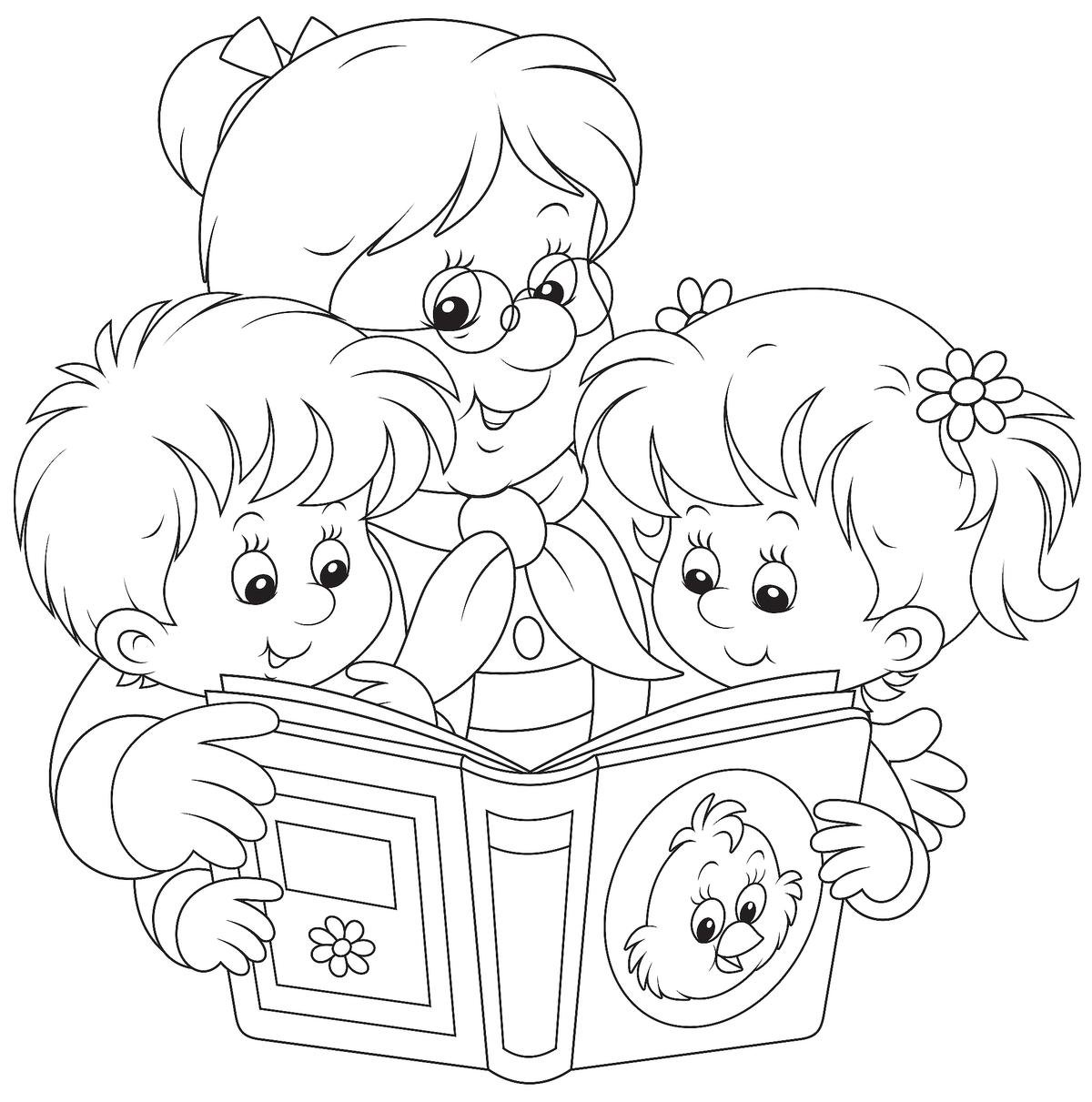 Раскраски дети с книгой картинки для детей