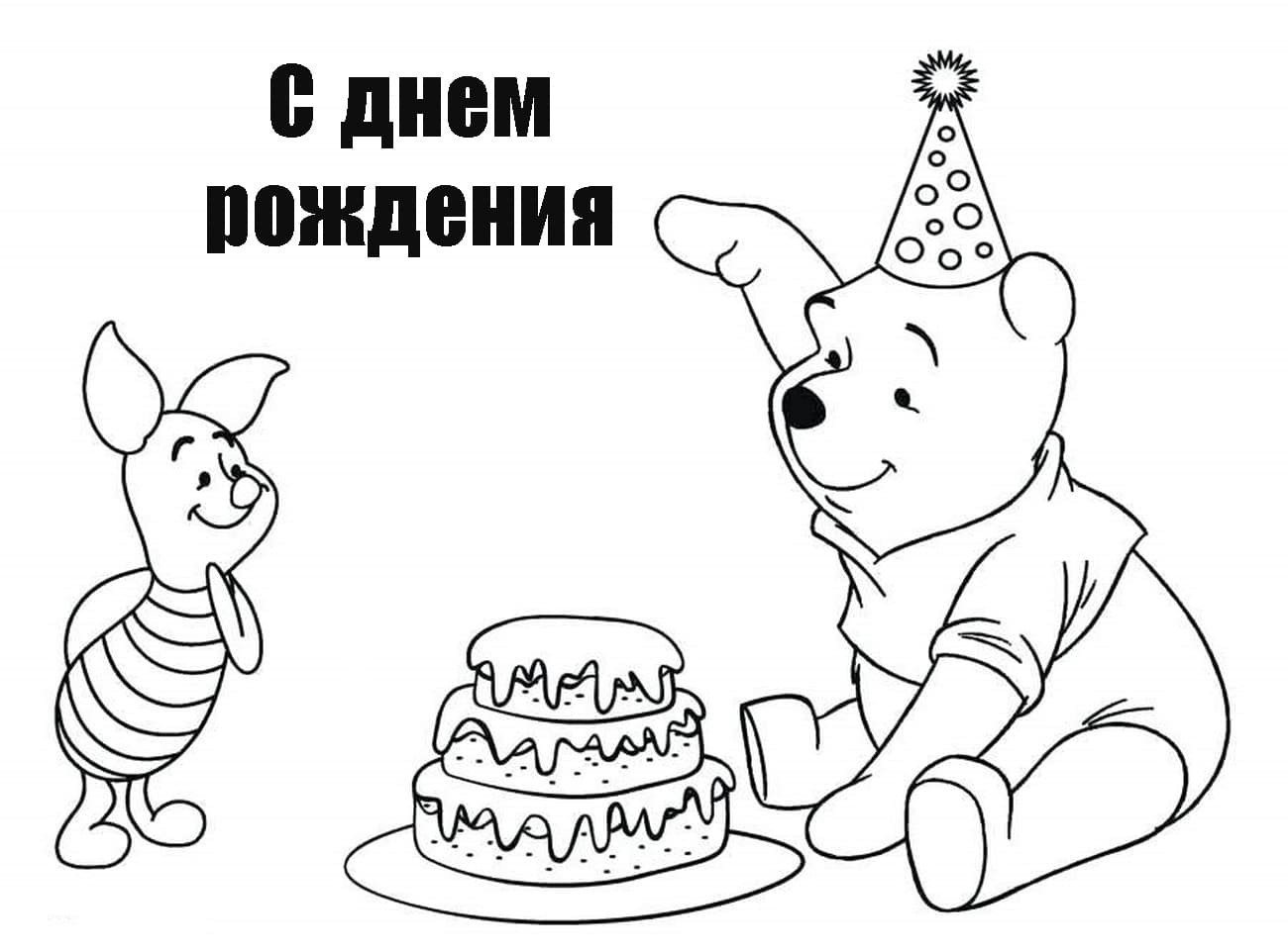 Открытка раскраска с днем рождения