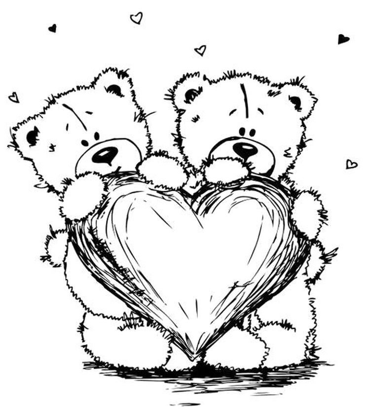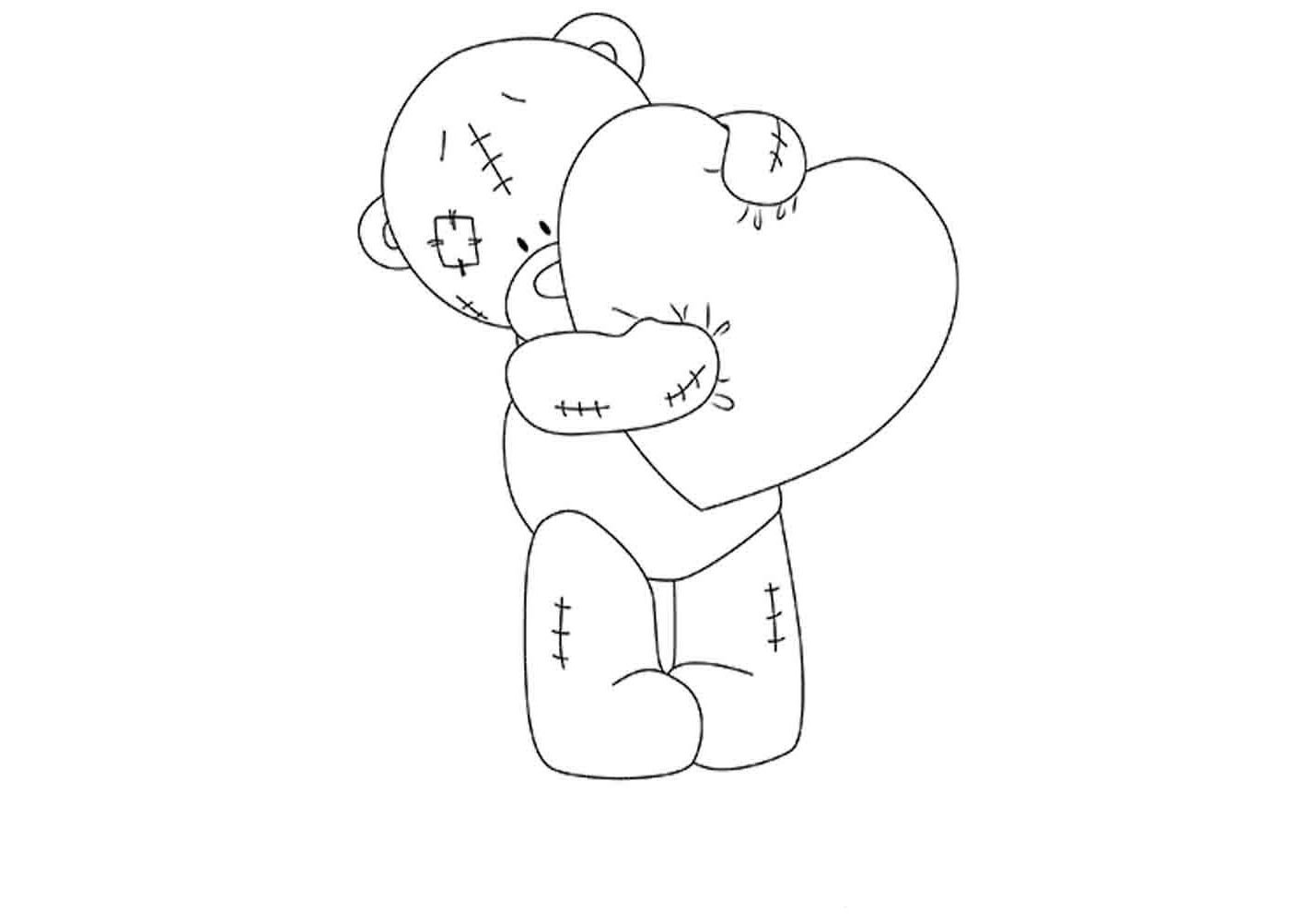 ![Раскраски мишки Тедди с сердечками]()