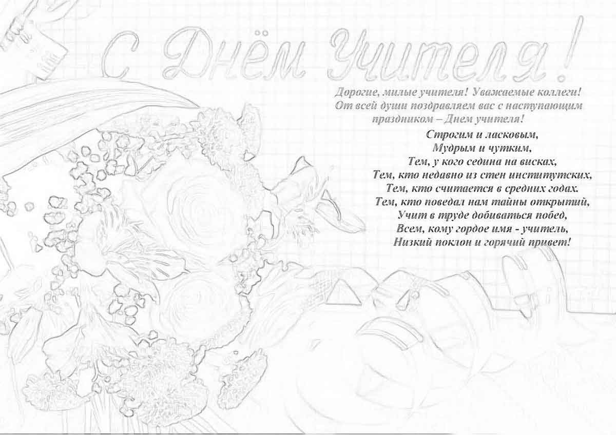 Открытка на день учителя раскраска