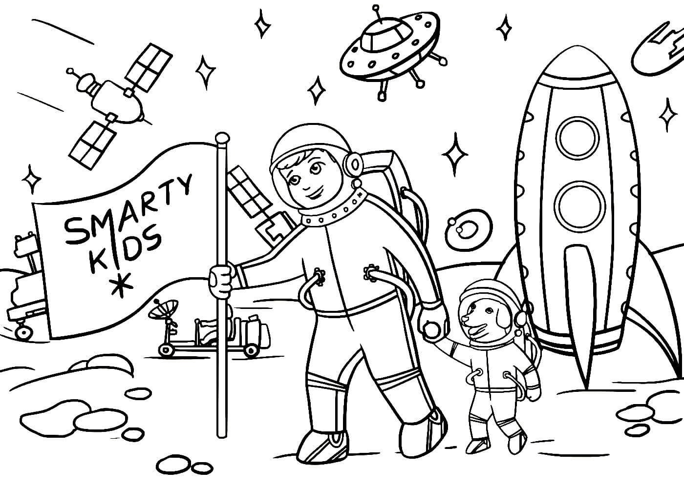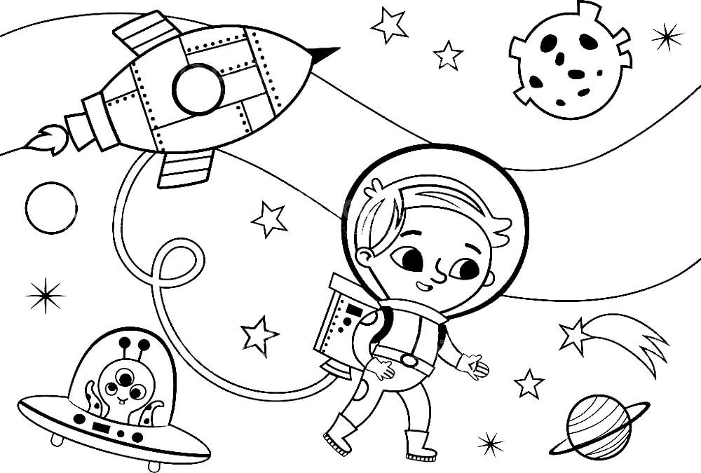 Космонавт раскраска для детей